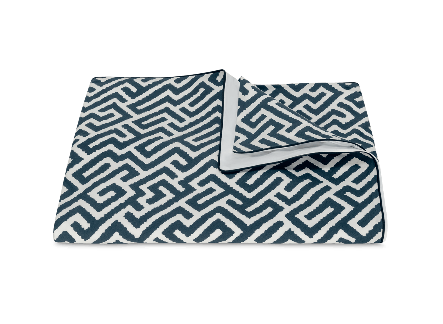 Gabriel is a Matouk Schumacher print featuring a striking geometric motif and complementary corded edge. Reminiscent of a finely woven tapestry, its design introduces dynamic movement and dimension to the bed boldly graphic yet elegantly refined.