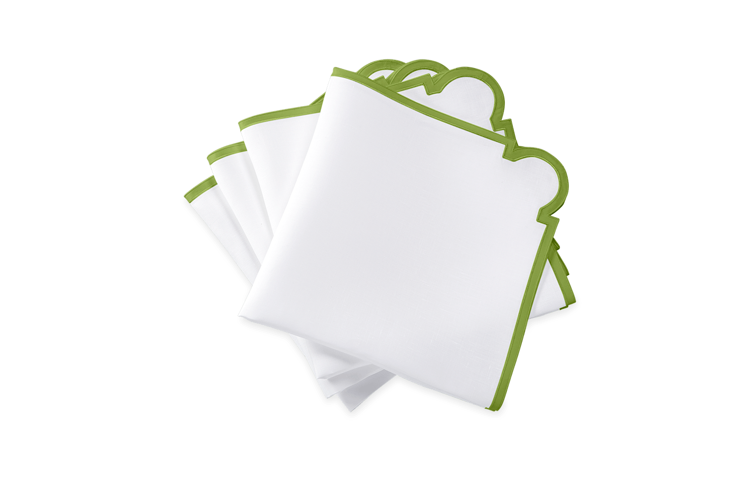 Inspired by a stroll on Worth Avenue in Palm Beach, the unique arch trim of shop awnings becomes a tasteful complement to exquisite table linen.