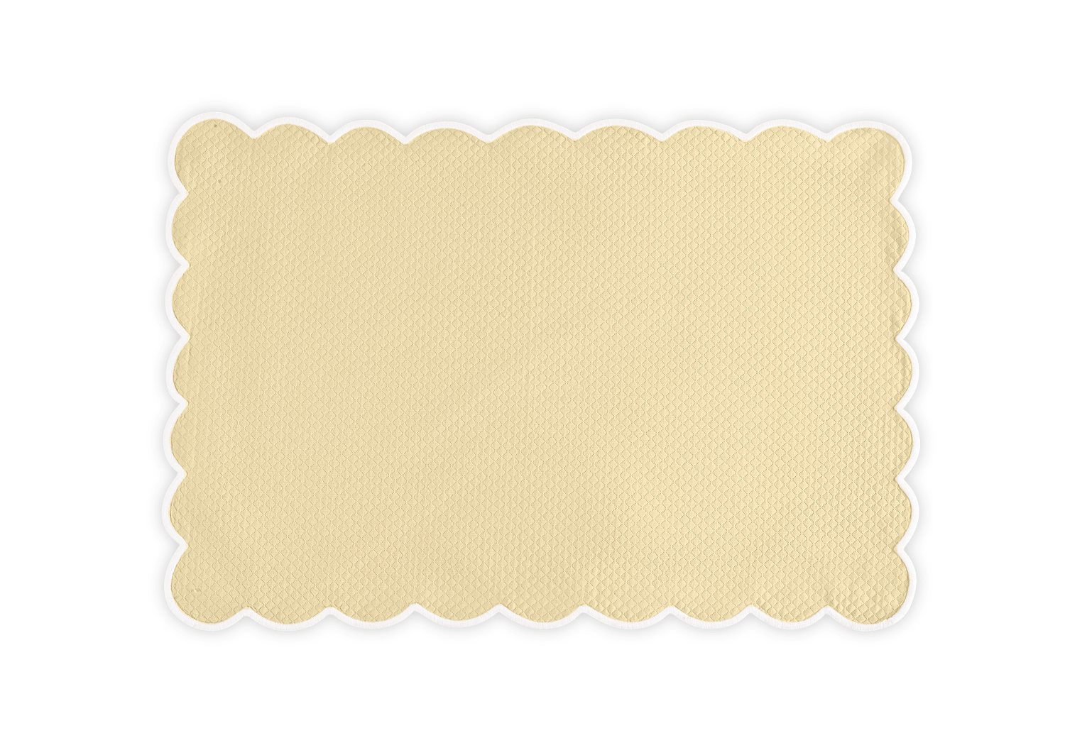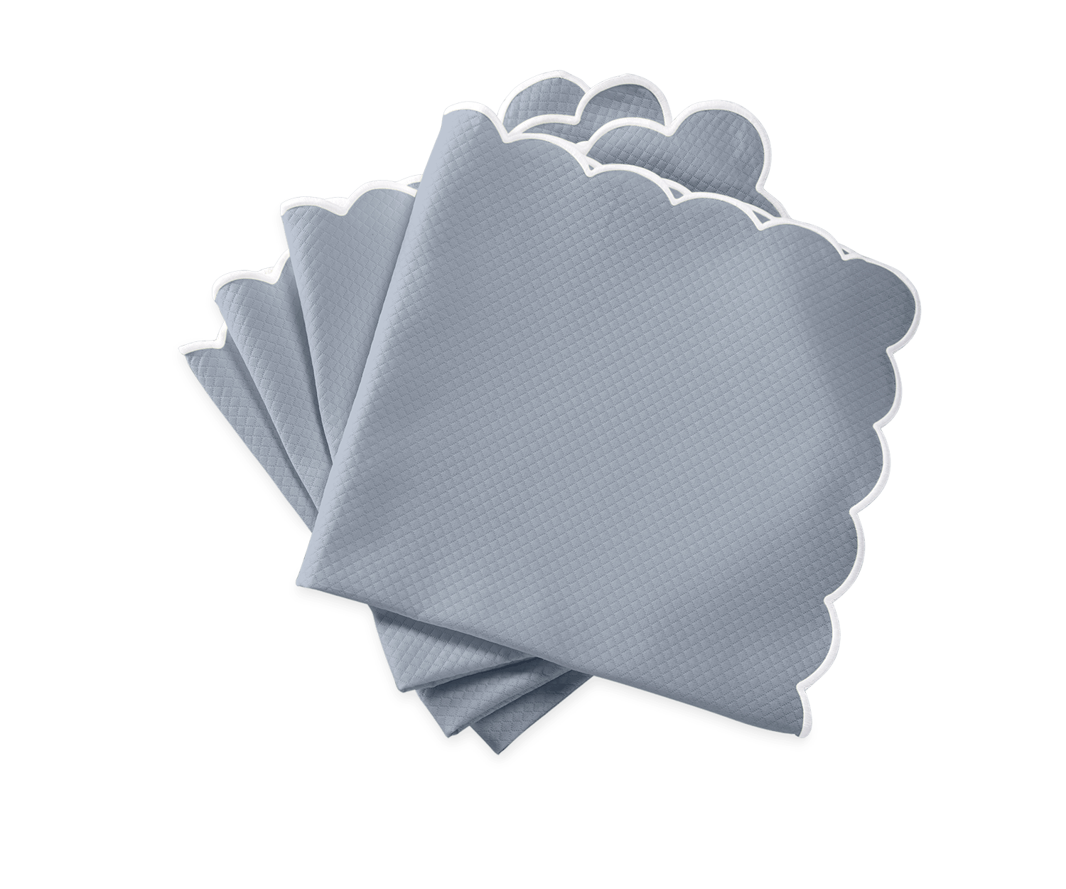 In classic diamond pique with a scalloped edge, Savannah Gardens is a longtime staple of the Matouk table linens collection. Done in a cotton/polyester blend, it is easy to care for (just machine wash and tumble dry), making it ideal for everyday.