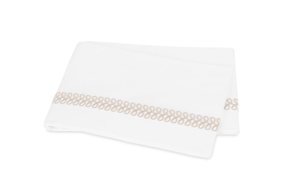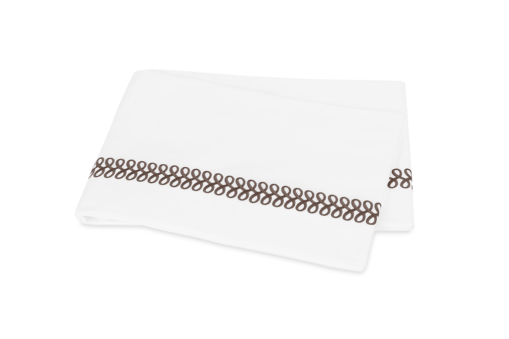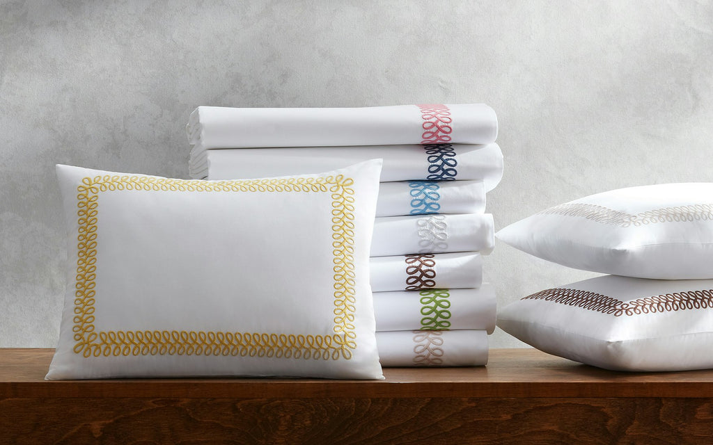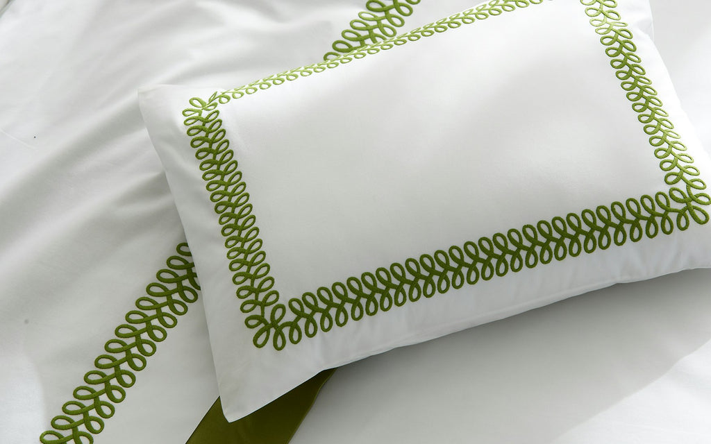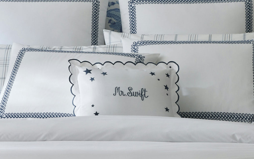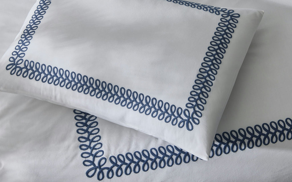 Embroidered on our crisp 520 thread count Ceylon percale, Astor Braid is a style with quintessential appeal. The bold design from Schumacher’s celebrated collection of tapes and trims is a timeless script, suited for pairing with an array of patterns.