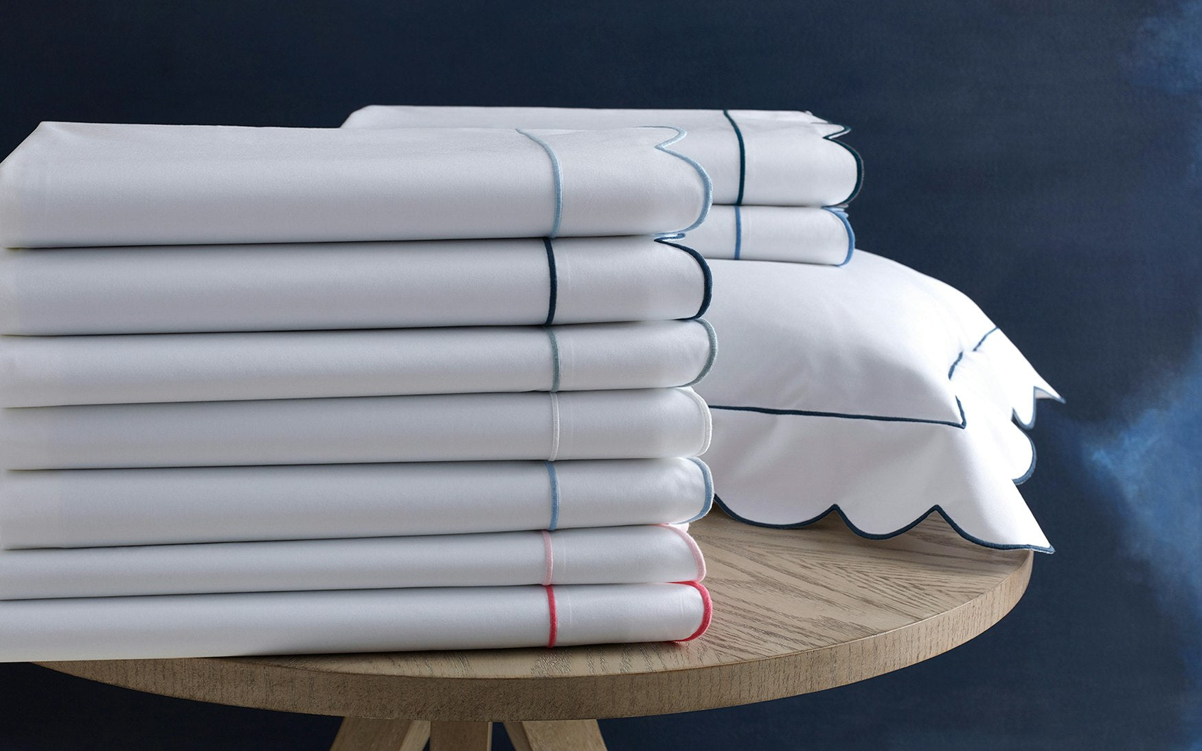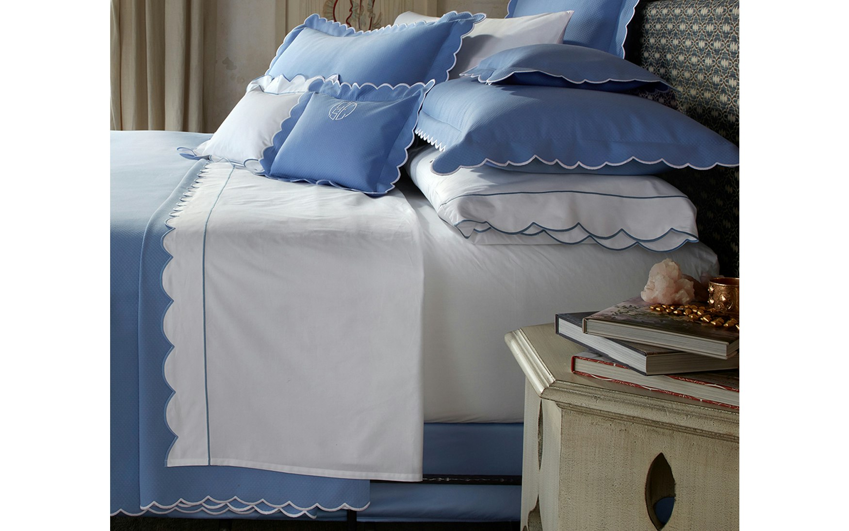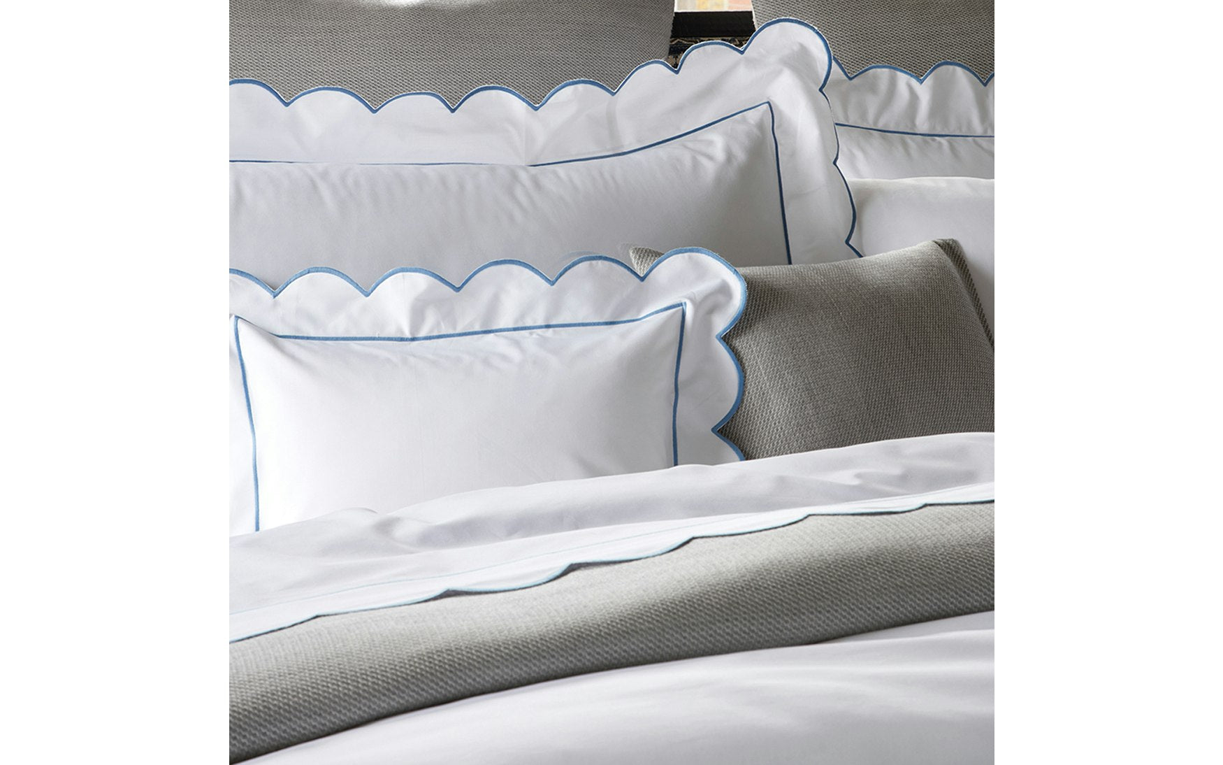 At once feminine and tailored, our crisp white 500 thread count Luca Egyptian cotton percale sheeting is adorned with oversize scallop detail and subtle satin stitching. It’s flirty and fun while maintaining a classic, finished bed look for any room.