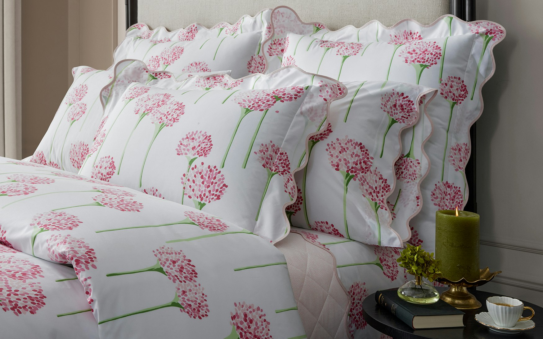 Happy, charming and vibrant allium flowers grace our 500 thread count Luca Egyptian cotton percale, creating the most popular pattern from our collaboration with artist Lulu de Kwiatkowski.