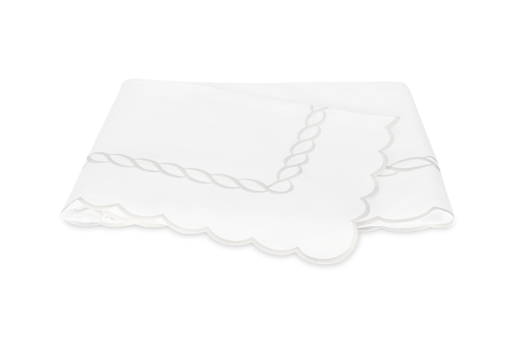 Delving into the Matouk archive, Classic Chain Scallop reintroduces our signature chain motif in combination with our timeless scalloped edge. It is crafted on Milano, our crisp and cool 600 thread count Egyptian cotton percale, and specially finished with a return embroidery detail on the flat sheet. Classic Chain Scallop is both charming and chic.
