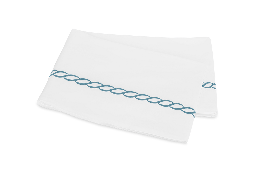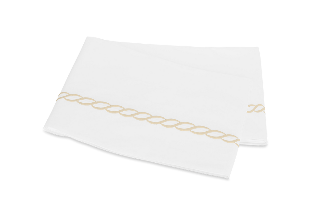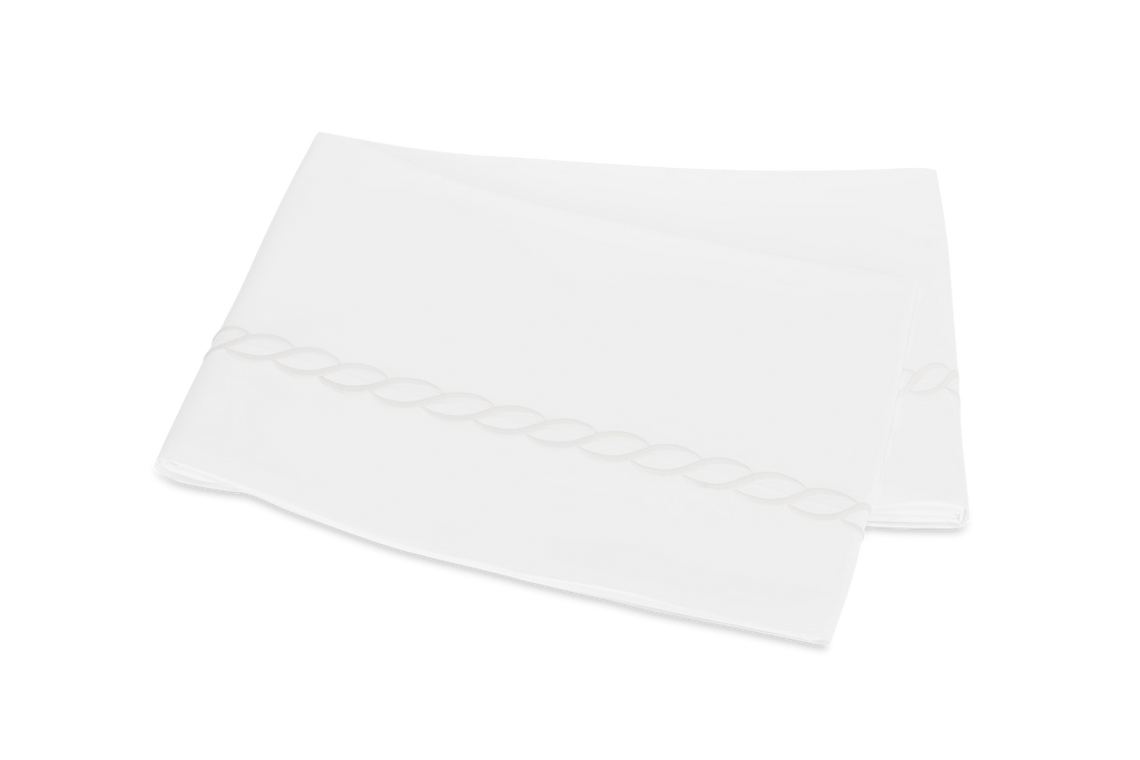 Inspired by a classical Greek motif, a fluid chain embroidery on our 350 thread count Sierra cotton percale creates an understated look for your bedroom.