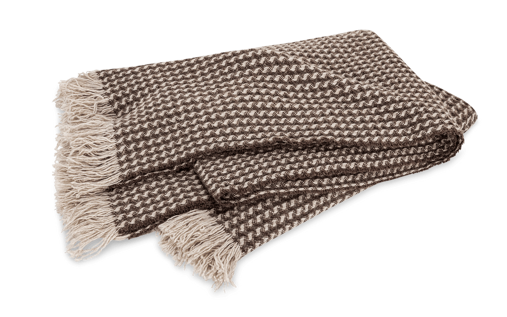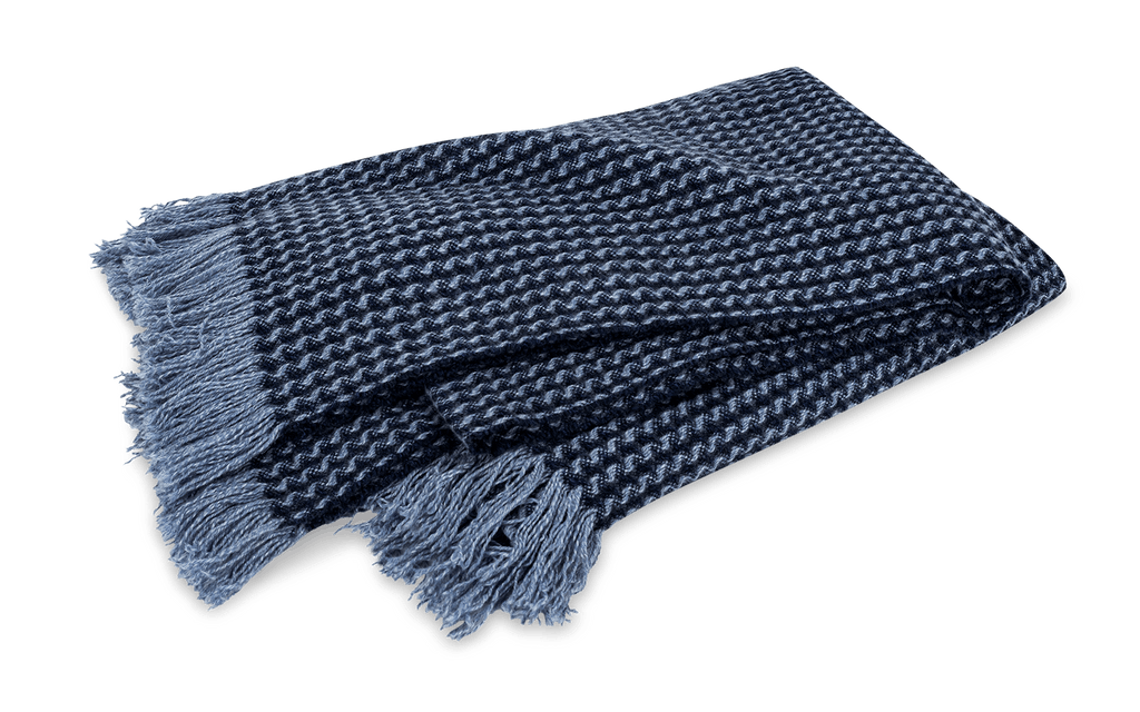 This cashmere throw is the most decadent in our collection. Once woven, Cleo is washed using a special method that gives the cashmere added loft and texture. Its monochromatic, elegant style boasts a subtle basketweave pattern and combed fringe.