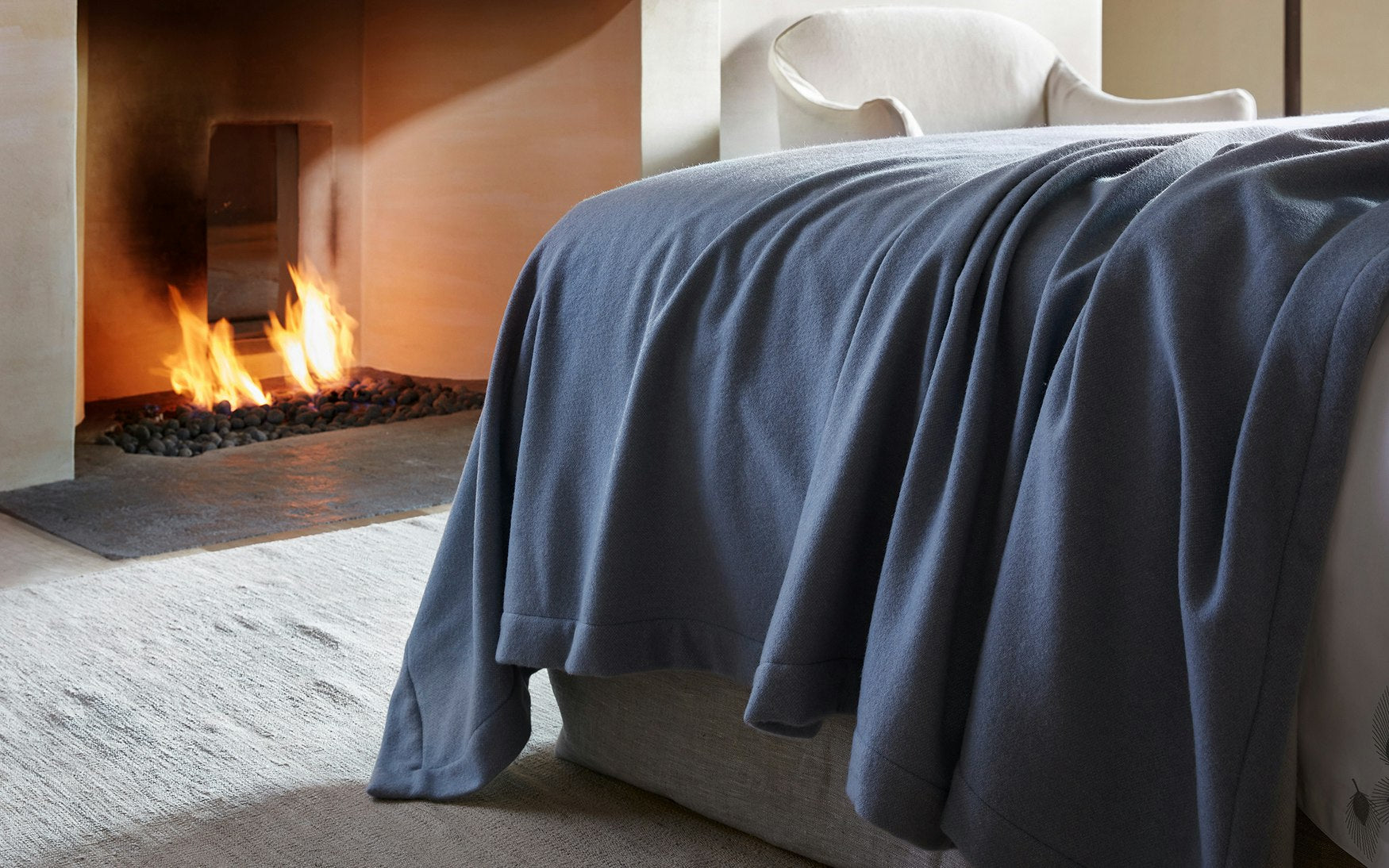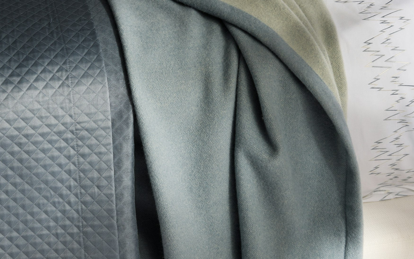 Our Cosmo blanket is crafted from 100% superfine merino wool, known for its remarkably soft hand, temperature regulating qualities, and ability to absorb moisture. Cosmo works perfectly under a duvet on cold nights, or under a lighter quilt or coverlet during spring and fall. Crisp mitered edges and a range of versatile colors - which reverse to a lighter tone for a subtle contrast when turned down - make Cosmo a good option for the top of a bed during warmer months.