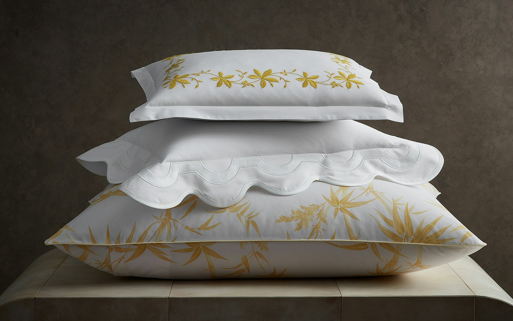 Tropical bamboos sweep across Dominique, a lively design inspired by Schumacher’s Arita floral. The large-scale, airy botanicals add whimsy to any space and are printed in four earthy colors. The design is printed on our 500 thread count Luca Egyptian cotton percale and is finished with a contemporary corded edge.