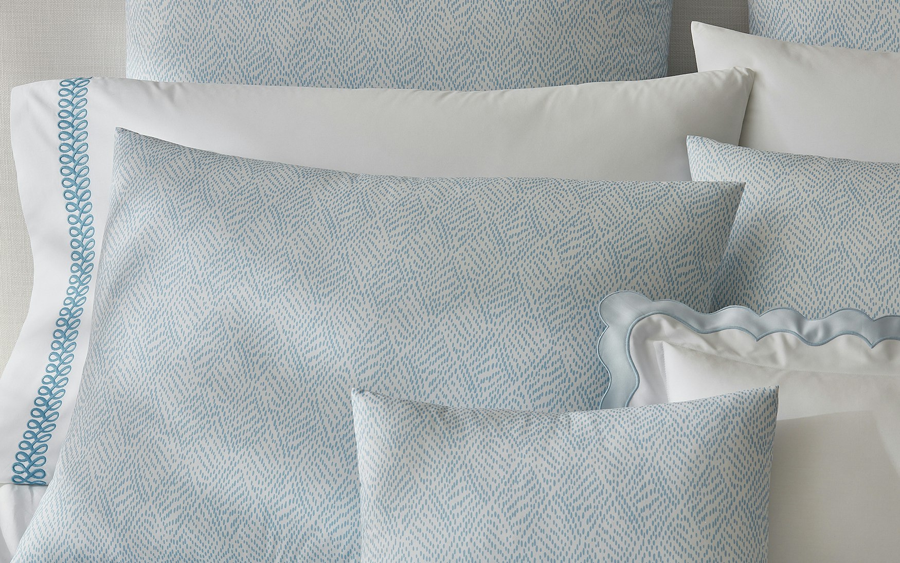Painterly brushstrokes emblematic of the classic harlequin pattern embellish this modern Schumacher design. Printed on 500 thread count Luca Egyptian cotton percale, this versatile geometric pattern pairs perfectly with a variety of our prints and solids, but it is equally captivating on its own.