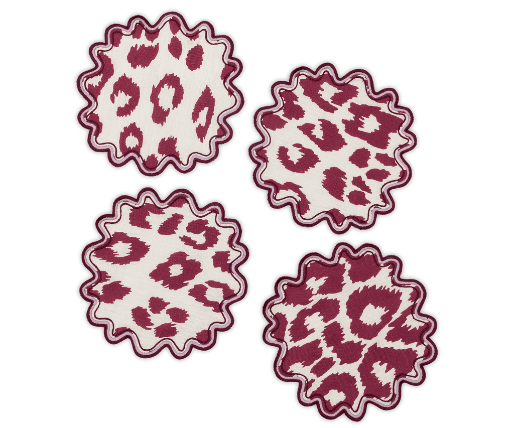Introduced in the 1970s, Schumacher’s Iconic Leopard is alluring, distinctive, and endlessly chic. We’ve printed it here on classic linen and finished our Cocktail Napkins with a meticulously embroidered, two-color wave border that is designed to make a statement. Each set of Cocktail Napkins comes in a beautiful Matouk Gift Box.