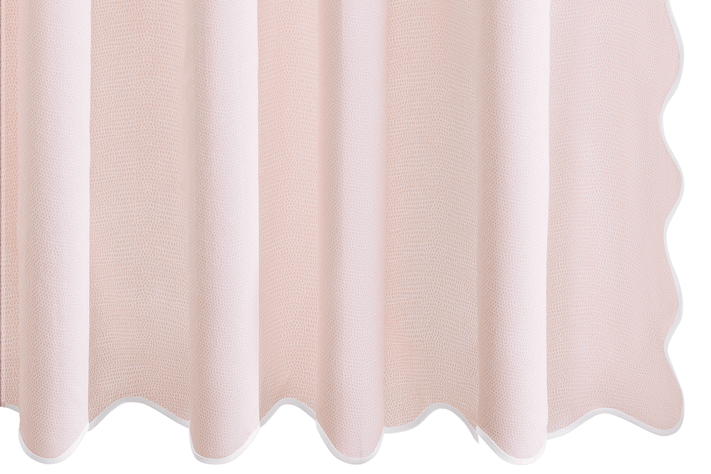 The Jasper shower curtain features our signature pebbled print on silky sateen. It comes in a wealth of versatile hues, each with a white scallop taped edge, and lends a contemporary feel to the bathroom.