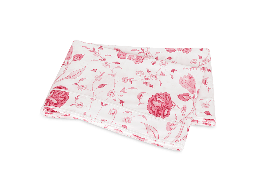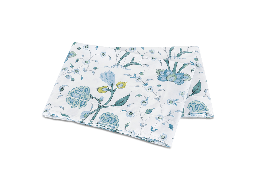 Khilana, a delightful, large-scale floral inspired by traditional Indian hand-block textiles, is a divine addition to the Matouk Schumacher collection. It begins with our 500 thread count Luca Egyptian cotton percale, printed in Italy in a refined blue colorway, and is finished in our Massachusetts factory, where we craft a flange with a unique double satin stitch along the outer and inner edges.