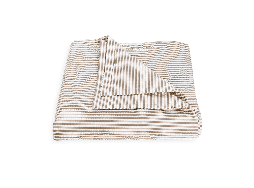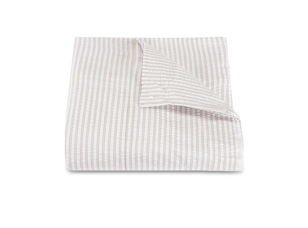 Matteo provides sophisticated top-of-bed options that evoke elegant menswear fabrics. Our interpretation is seersucker with a neutral, two-toned stripe and finished with a 1-inch flange. You'll love its dapper look as a duvet, shams, and a quilt with a 4-inch diamond stitch pattern.