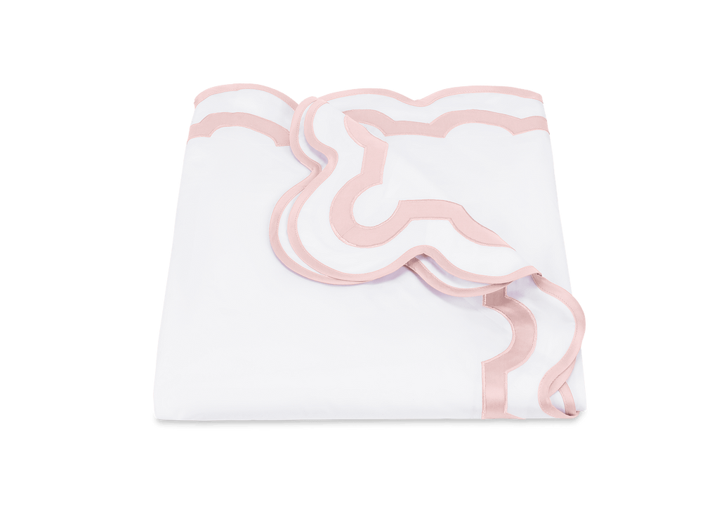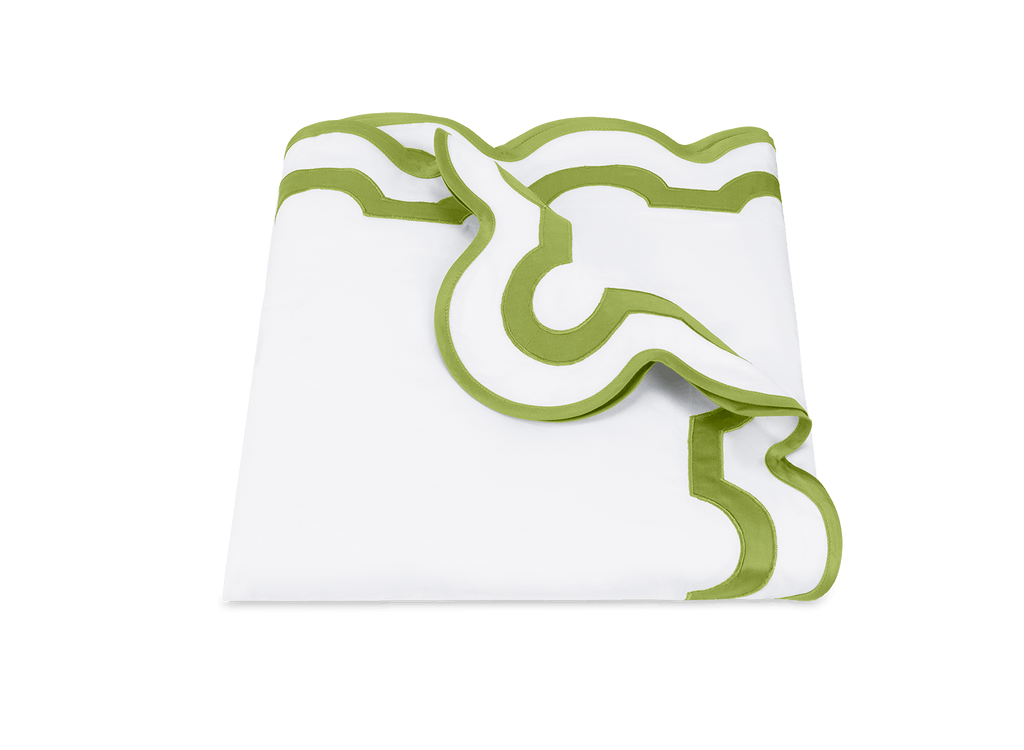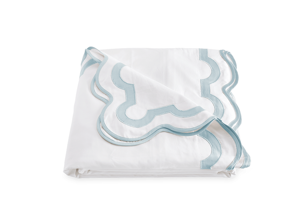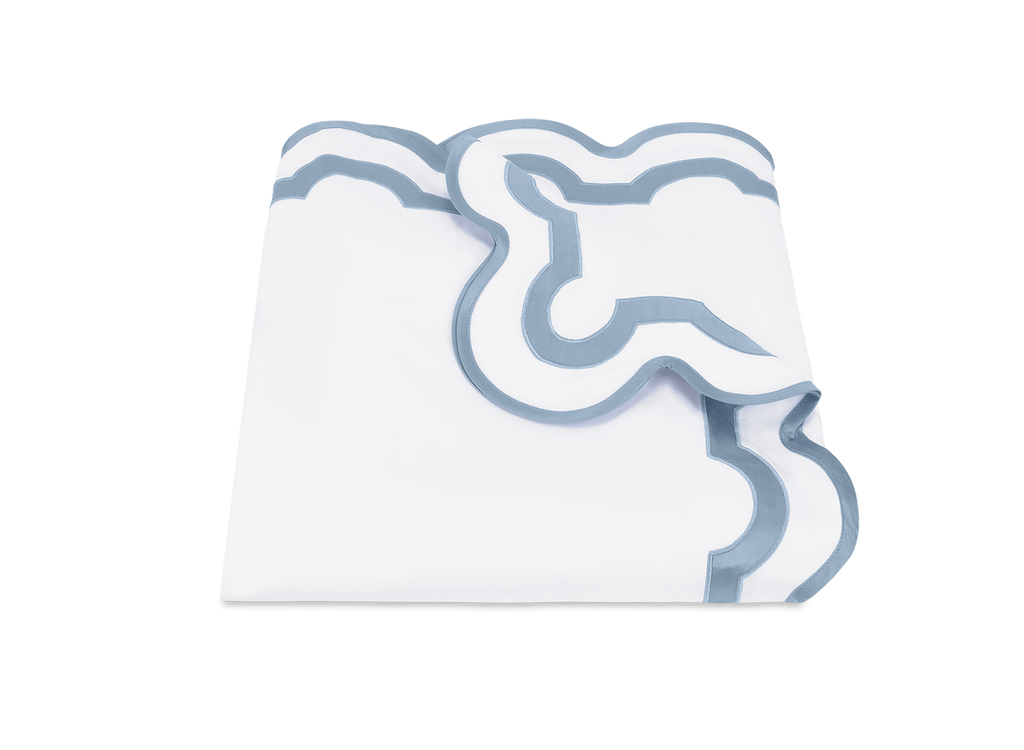 Inspired by a stroll down Worth Avenue in Palm Beach, the unique arch trim of shop awnings becomes a tasteful complement to our soft and luxurious 600 thread count Milano Egyptian cotton percale bedding, made in Italy.