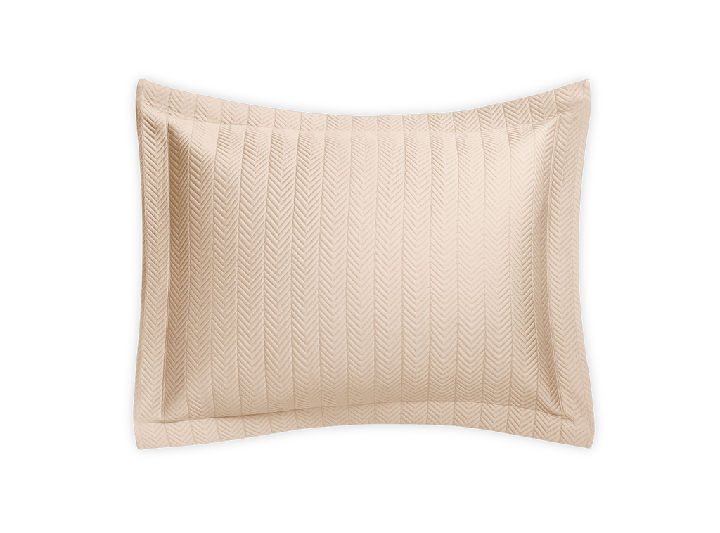 Netto puts a new twist on a traditional quilt pattern, creating an array of paneled chevron rows. To give it a light, lofty weight and silky-smooth touch, it's crafted from Talita, our 615 thread count Giza Egyptian cotton sateen. Netto is a perfect complement to our Carolina and Talita Satin Stitch collections.