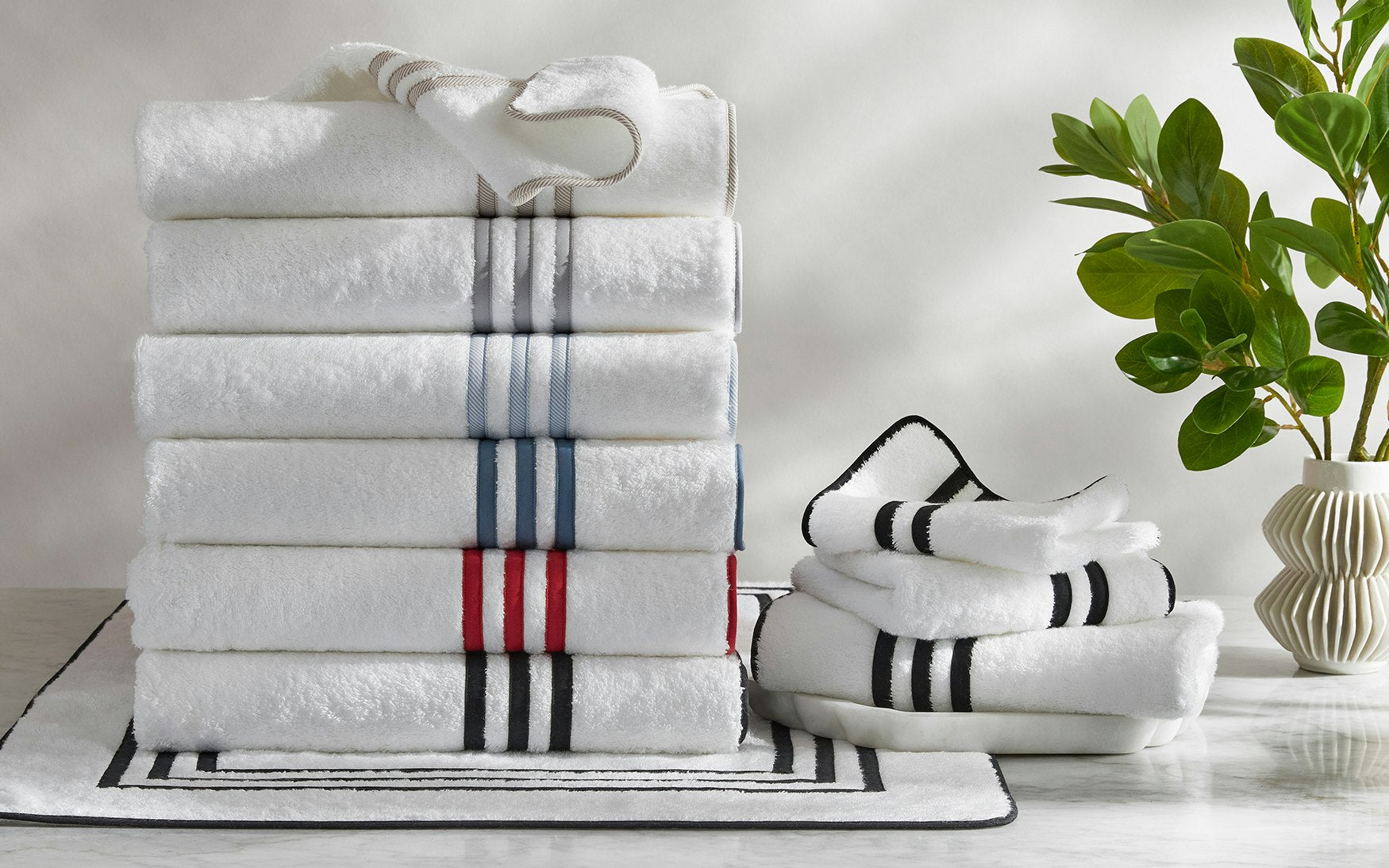 A triple appliqué-tape border on long-staple Cairo cotton terry gives Newport its classic elegance and incomparable quality. Choose from eight beautiful tape colors to breathe new life into your bath.