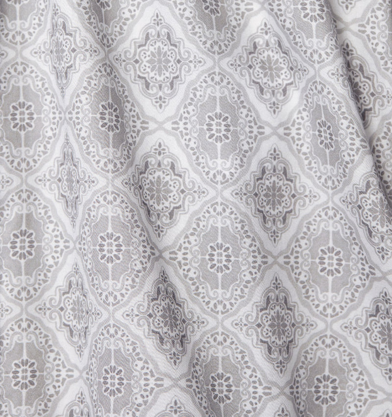 The Ravenna loungewear collection seamlessly marries opulence with comfort. Inspired by the rich Italian architecture and intricate ceramic tile-work of Ravenna, this collection invites you to indulge in moments of repose. Crafted from printed cotton sateen fabric, its all-over ornamental pattern in tin and white exudes understated luxury. Delicate piping along the cuffed hems and a printed drawstring add thoughtful details, making each piece a wearable masterpiece. Whether you’re sipping espresso on a sun-drenched terrace or curling up with a book, let the Ravenna loungewear embrace you in every thread.