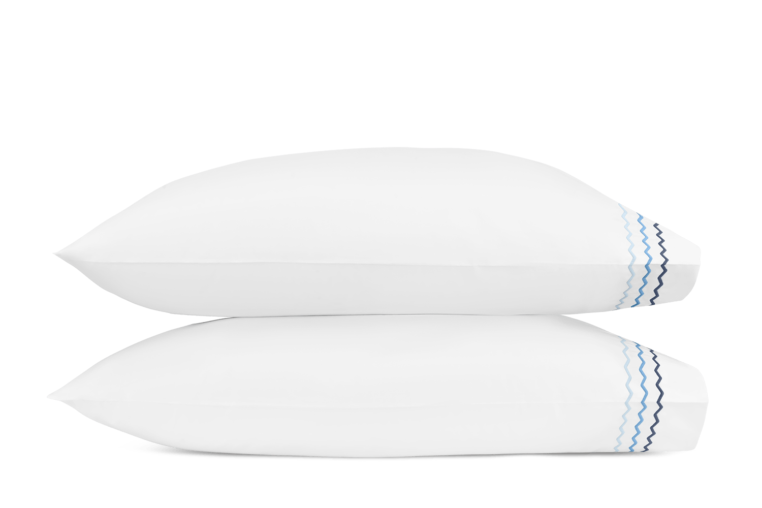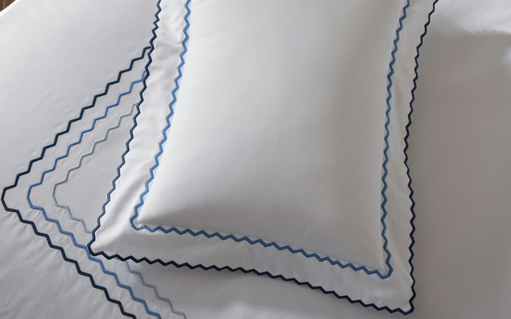 Axel is a lively offering that features playful zigzag embroidery in a variety of color combinations. Woven from long-staple cotton for an exceptionally soft hand, Axel lends a spirited energy to the modern bed with its graphic stitched trim.