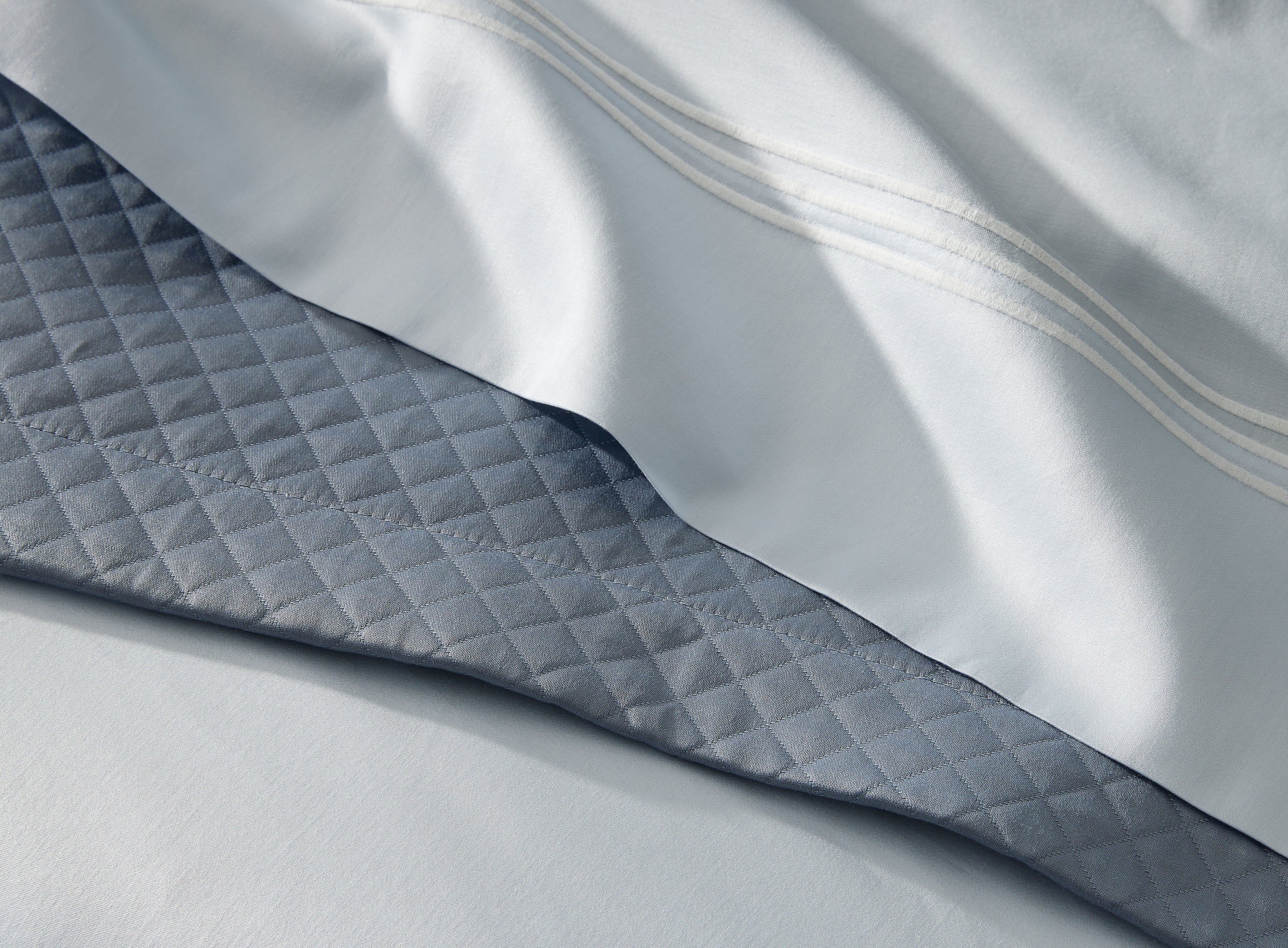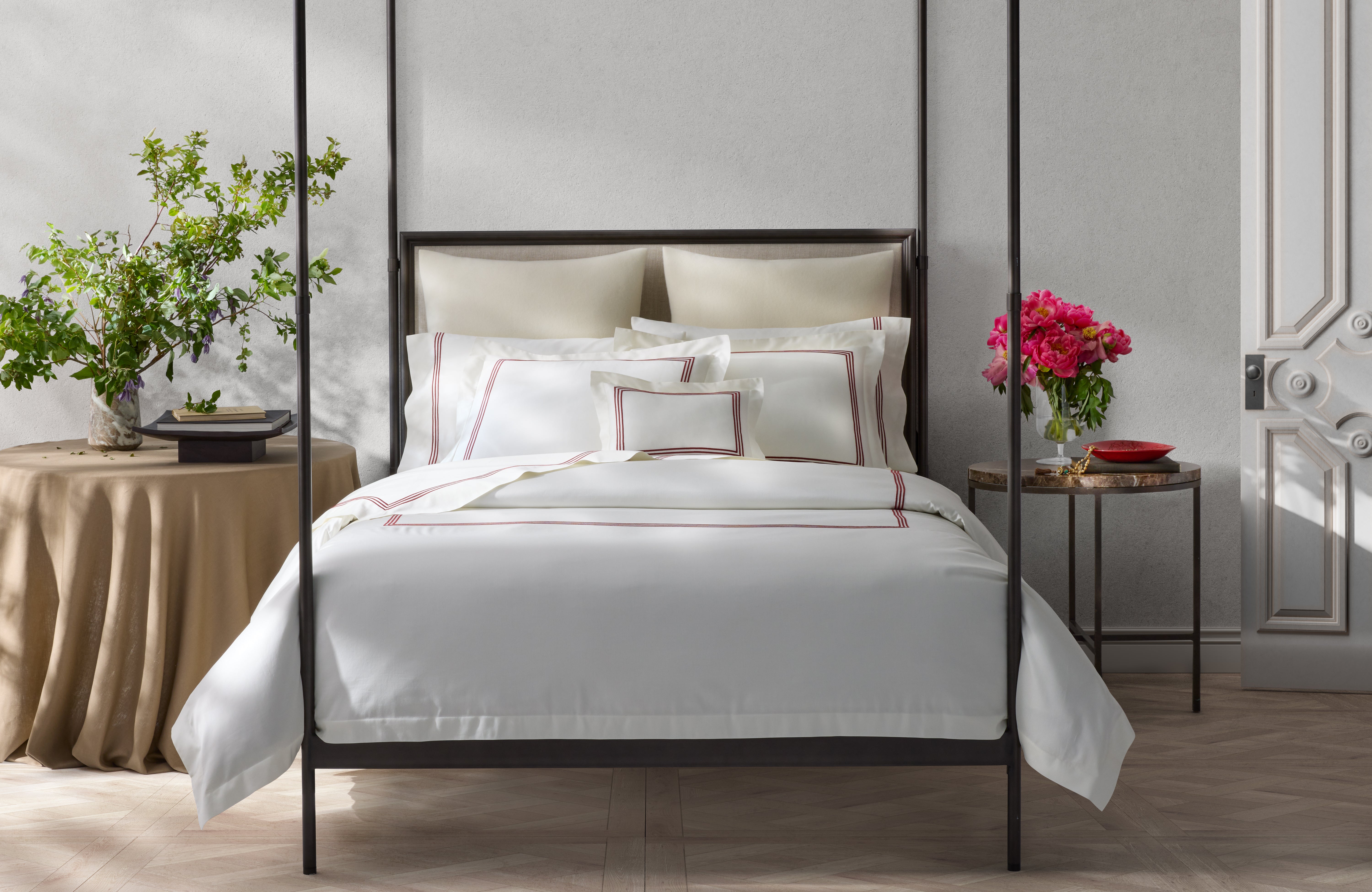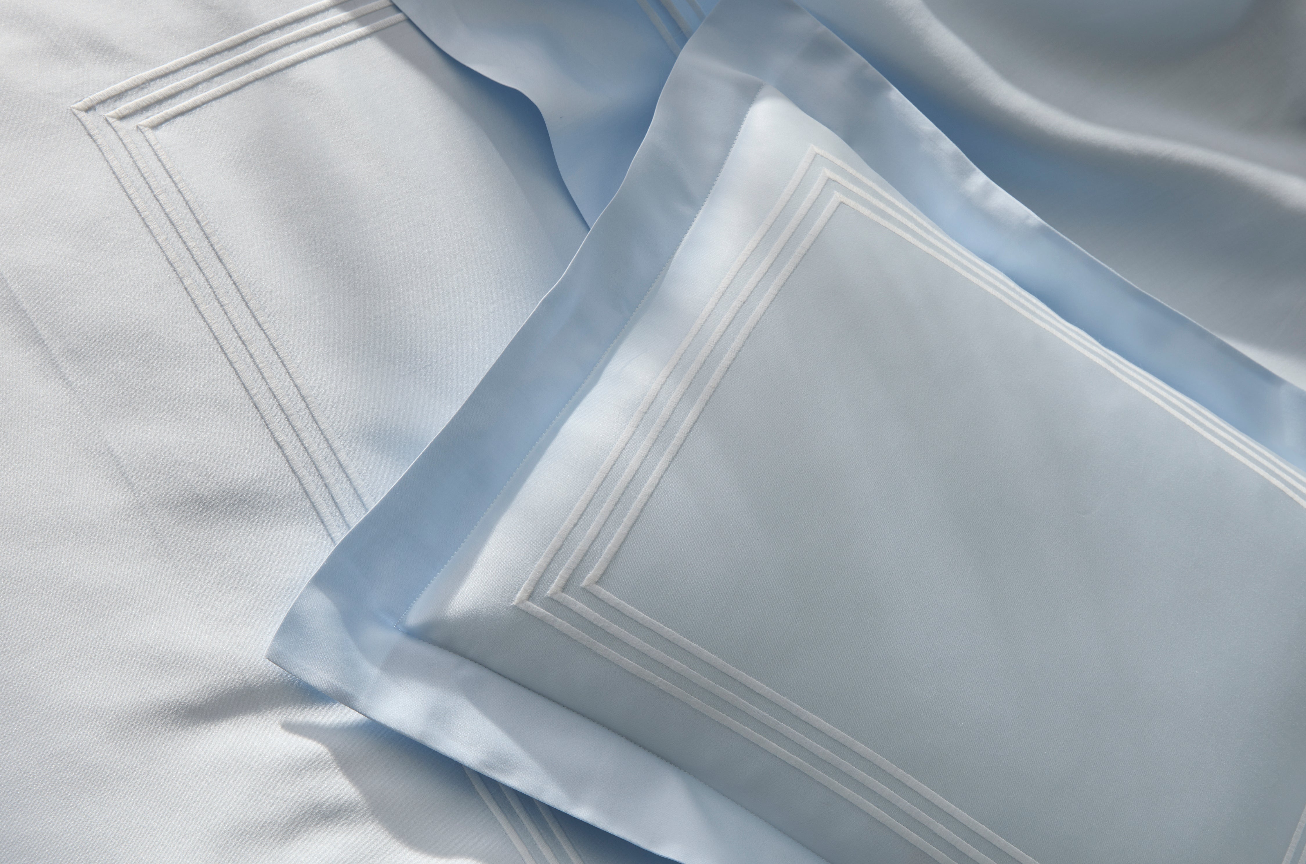A much anticipated addition to our signature collection, Bel Tempo Nocturne brings Matouk's iconic embroidery to our beloved sateen sheeting for the first time. The flat sheet is specially finished with a return embroidery, a detail usually reserved for our bespoke designs. Bel Tempo Nocturne is offered in a diverse palette of muted neutrals and bold contrasts.