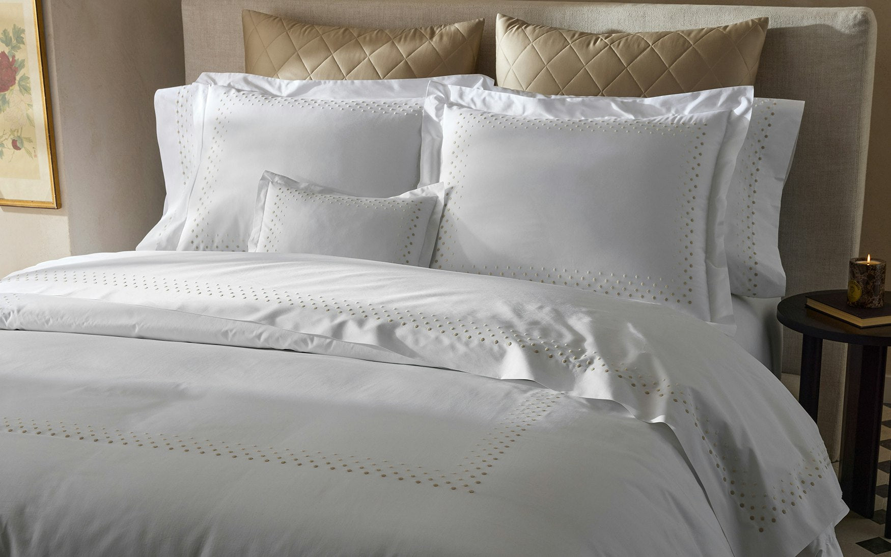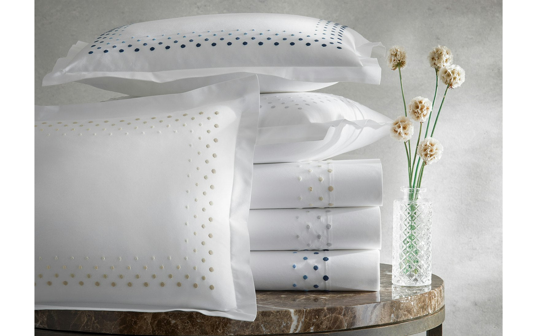 The Dorothy collection is a vibrant ombré design with four rows of monochromatic dot embroidery on our signature Milano percale sheeting. The result is an effortlessly cool, design-forward look that brings a modern sensibility to the bedroom.