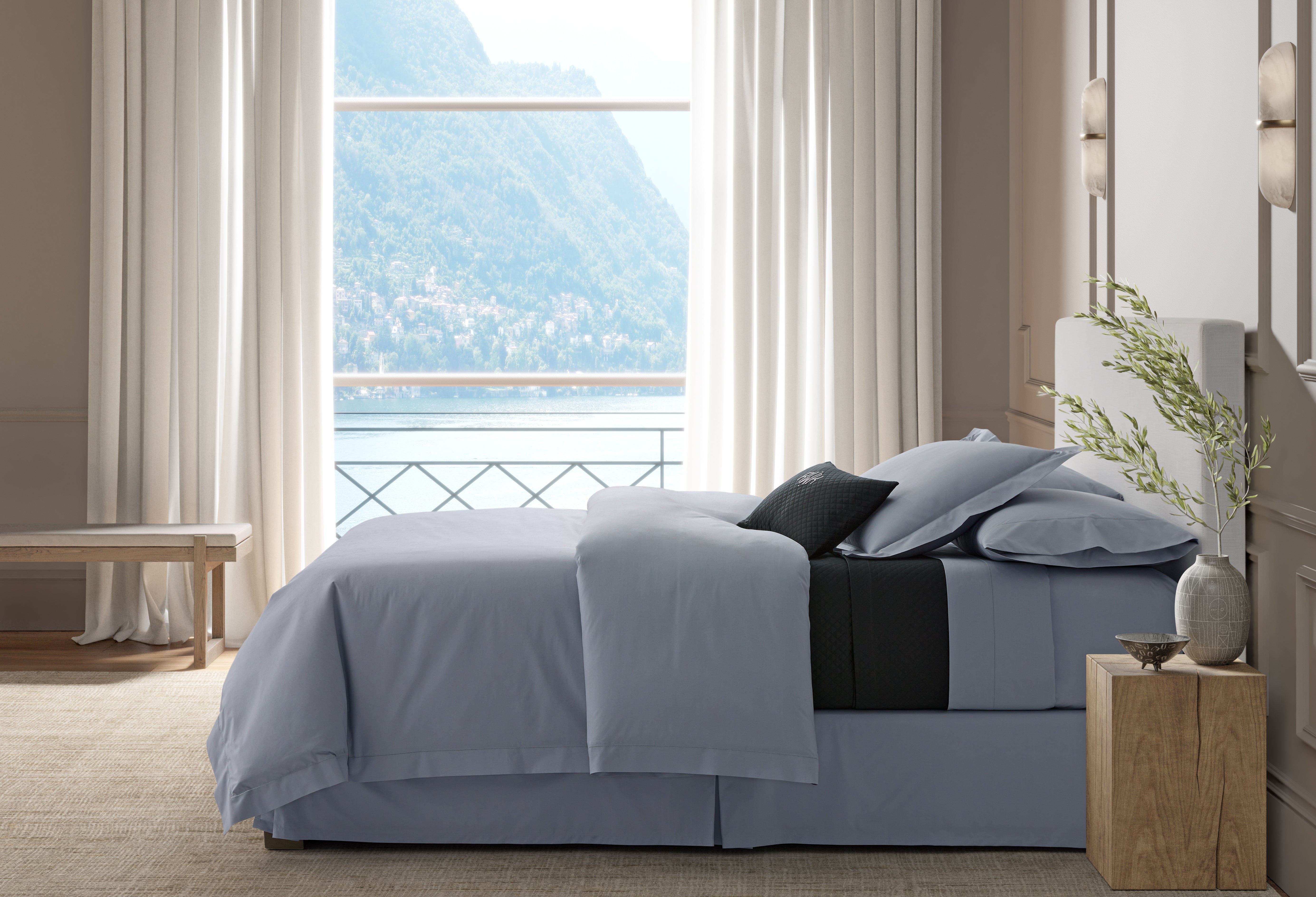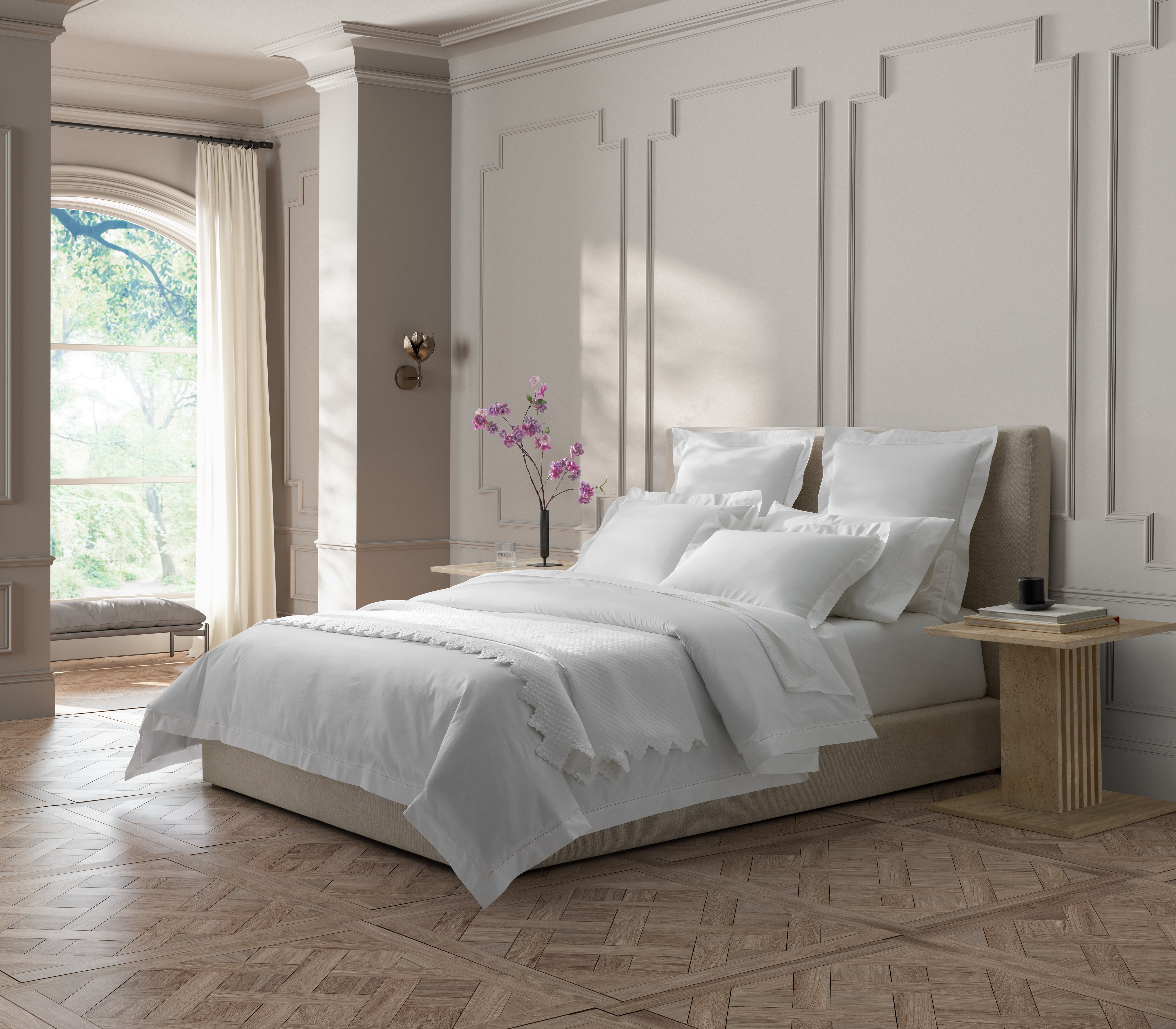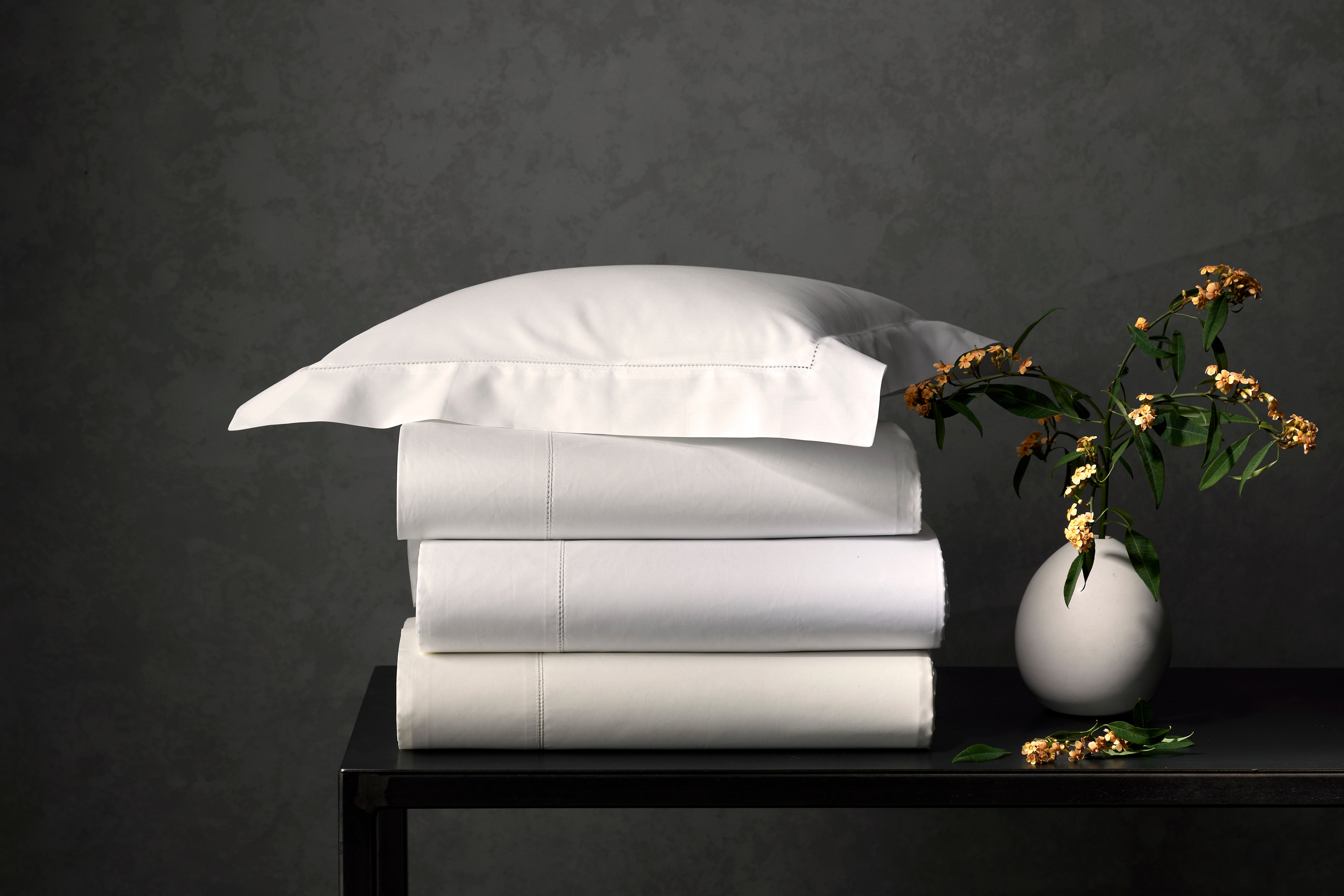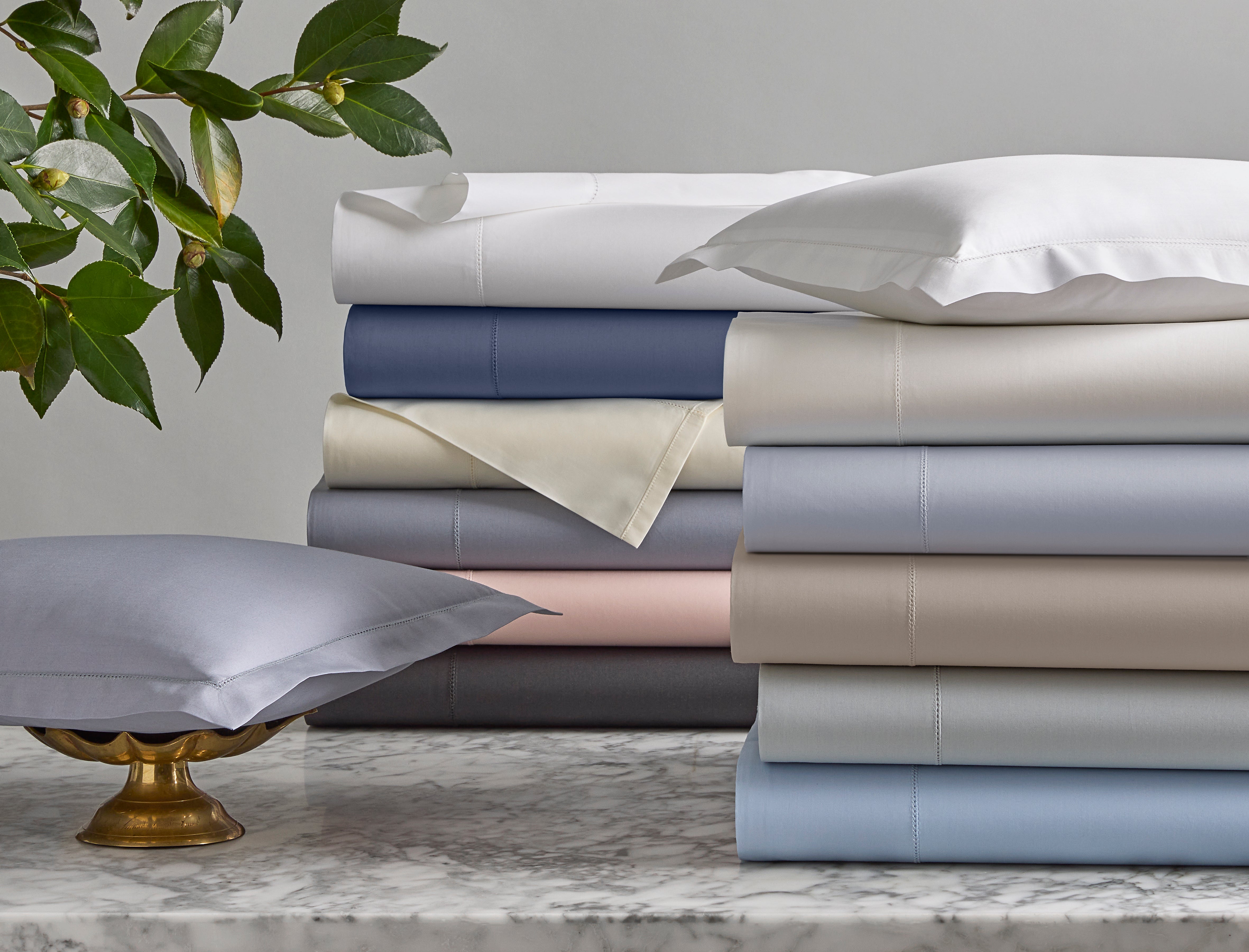 Milano has long been a staple in our sheeting collection for styles like Lowell and Mirasol. Here, this 600 thread count Egyptian cotton percale sheeting is available in its purest form with a subtle, sophisticated hemstitch detail.