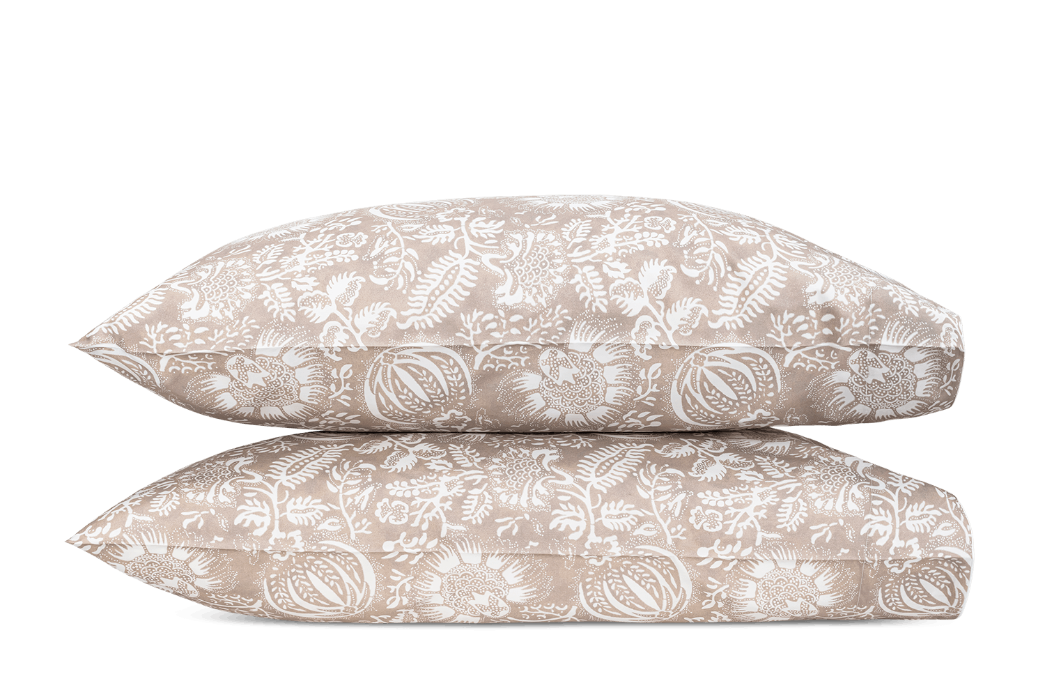 Schumacher's intricate pomegranate print brings an Old World bohemian charm to our crisp cotton percale. With subtle tonal variations inspired by the handcrafted nature of block print textiles and an elegant corded edge, this style is ideal for artful layering with a mix of prints, colors, and textures.