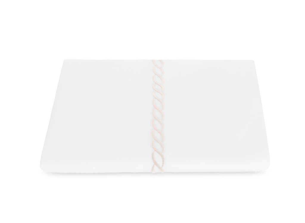 Inspired by a classical Greek motif, a fluid chain embroidery on our 350 thread count Sierra cotton percale creates an understated look for your bedroom.