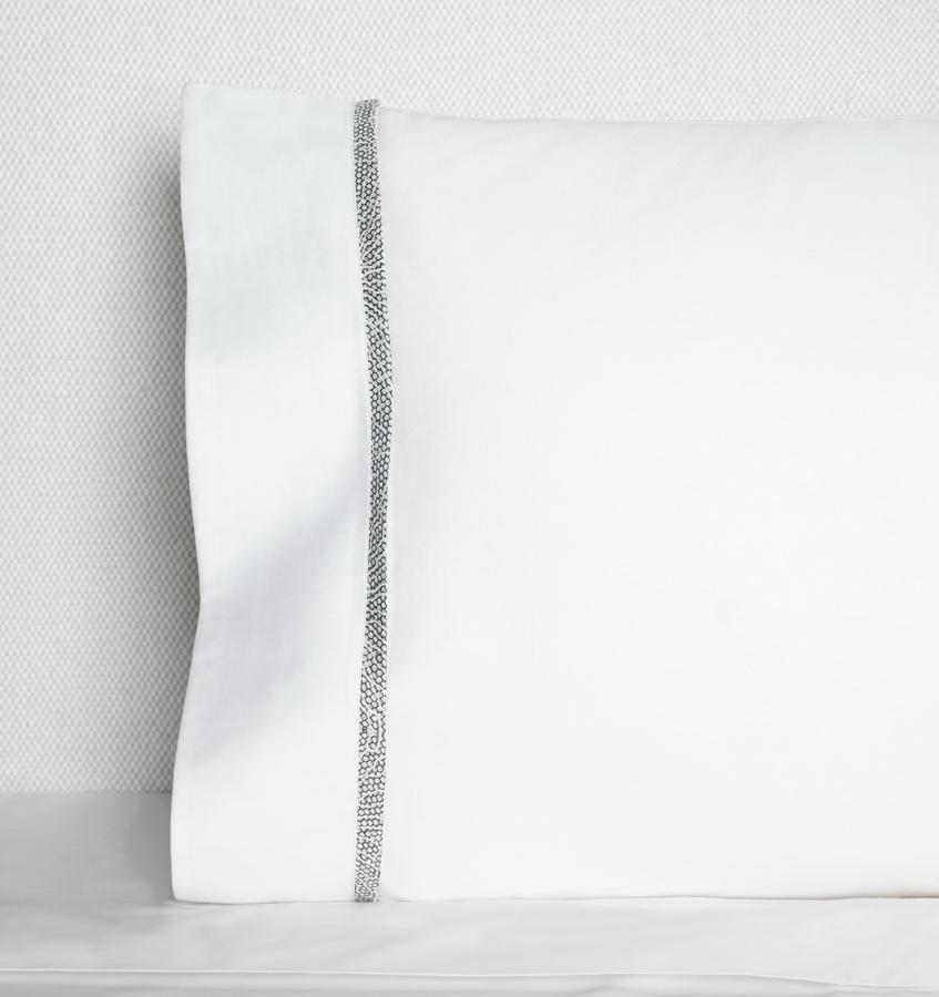 Echoing our rich heritage of lace applications, Emilia is printed with an exquisite lace pattern in soft ivory and black tones. The netted lace pattern creates a delicate mirage of beauty. The collection features a duvet cover and shams with an all-over print, while the pillowcases and flat sheet feature an applique border to coordinate the look.