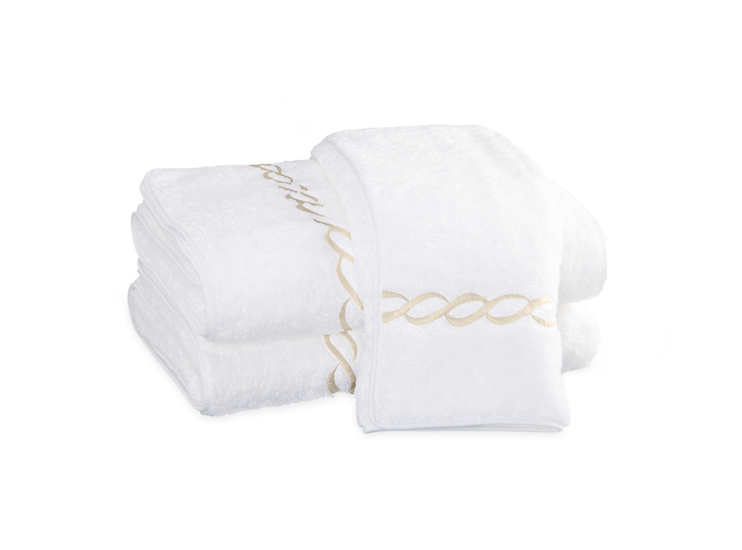 Our Classic Chain tub mat features a flowing motif inspired by ancient Greek treasures, neatly embroidered on Cairo long-staple cotton terry. Its soft colors and subtle movement create a timeless, understated beauty.