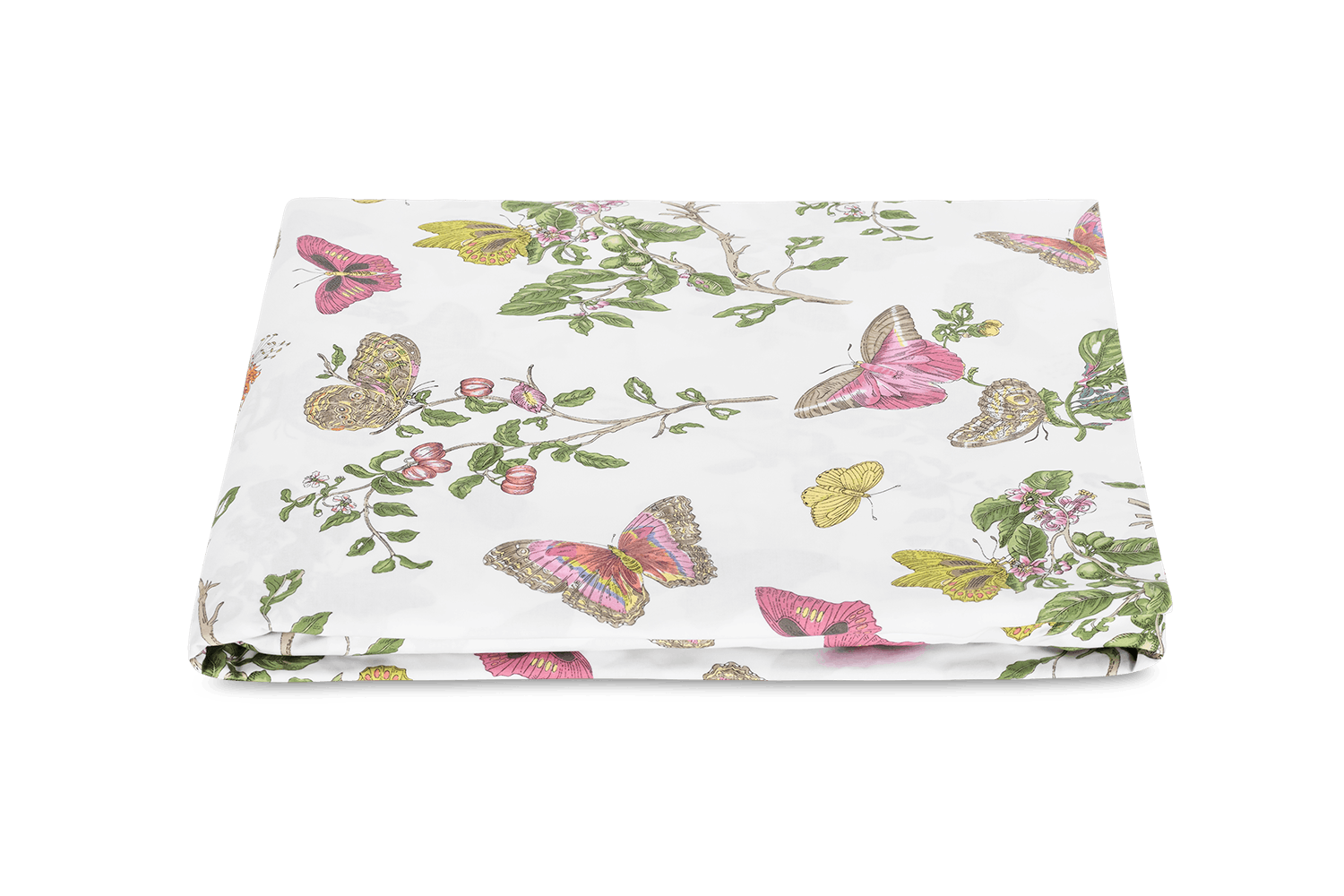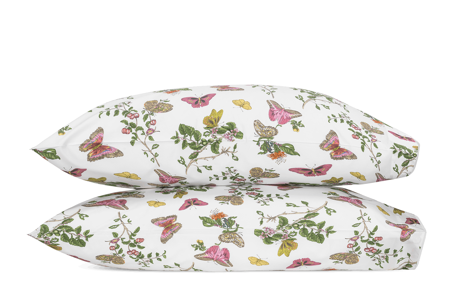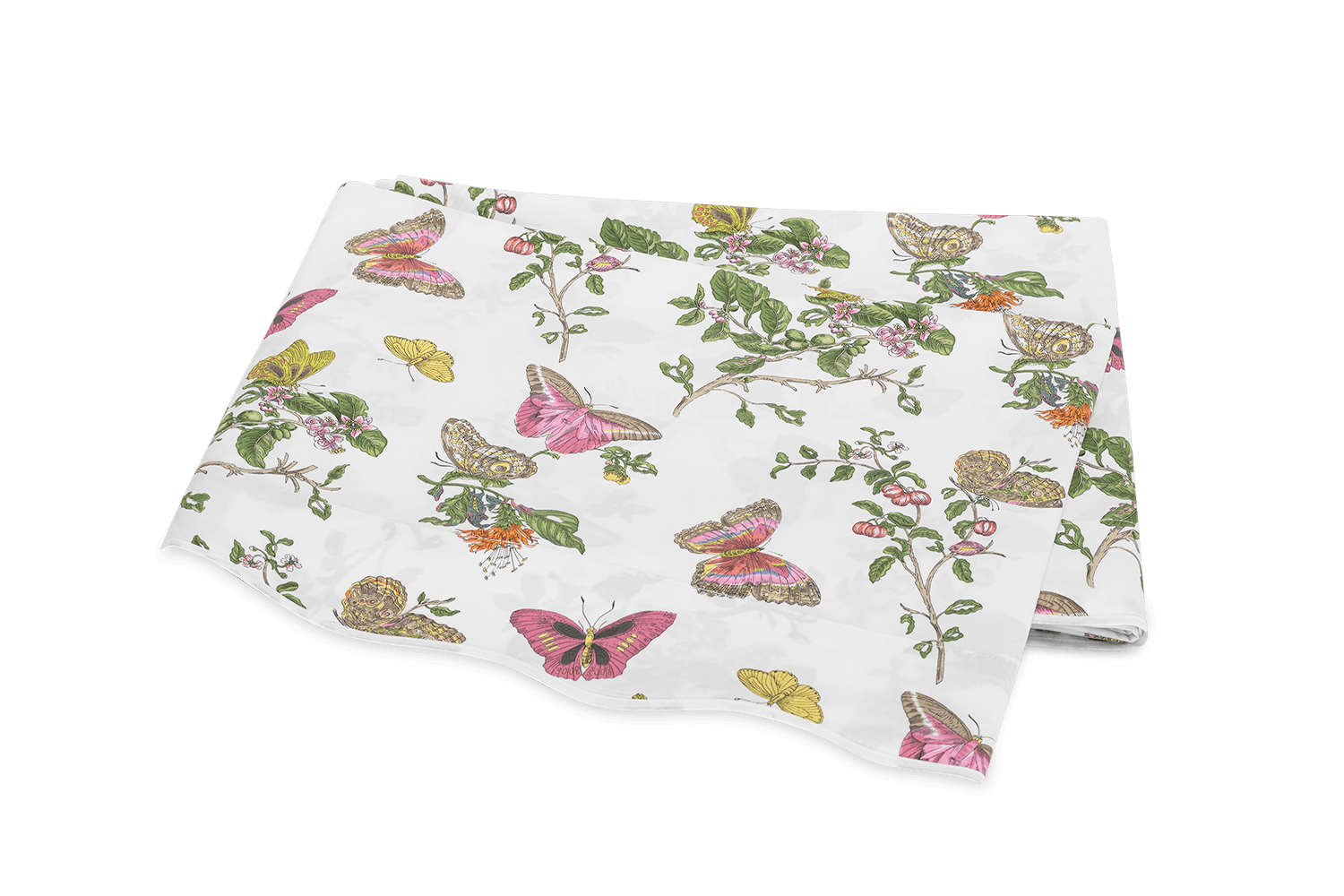 Baudin Butterfly is a delightful Matouk Schumacher print with an enchanting mix of butterfly and botanical motifs. It’s elegantly finished with a scalloped trim, adding an extra note of refinement.
