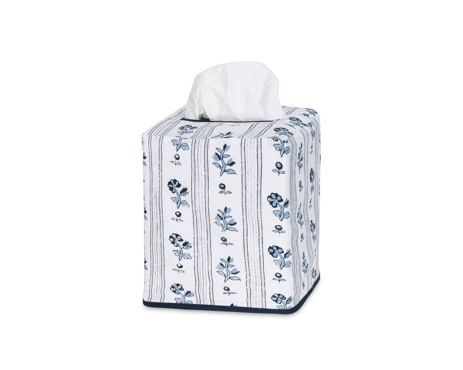 The Cabanon Stripe tissue box cover is a charming Matouk Schumacher print whose delicate stripes and florals evoke a French Provincial sensibility. Crafted from crisp percale, its refined detailing brings an airy elegance to any home design.