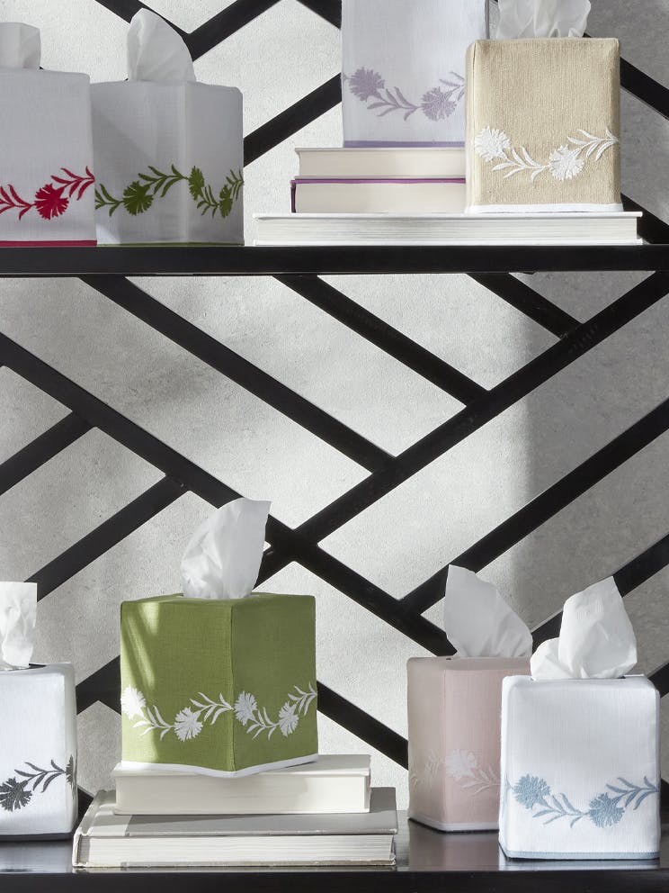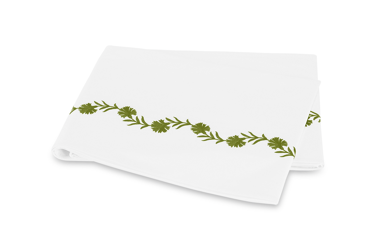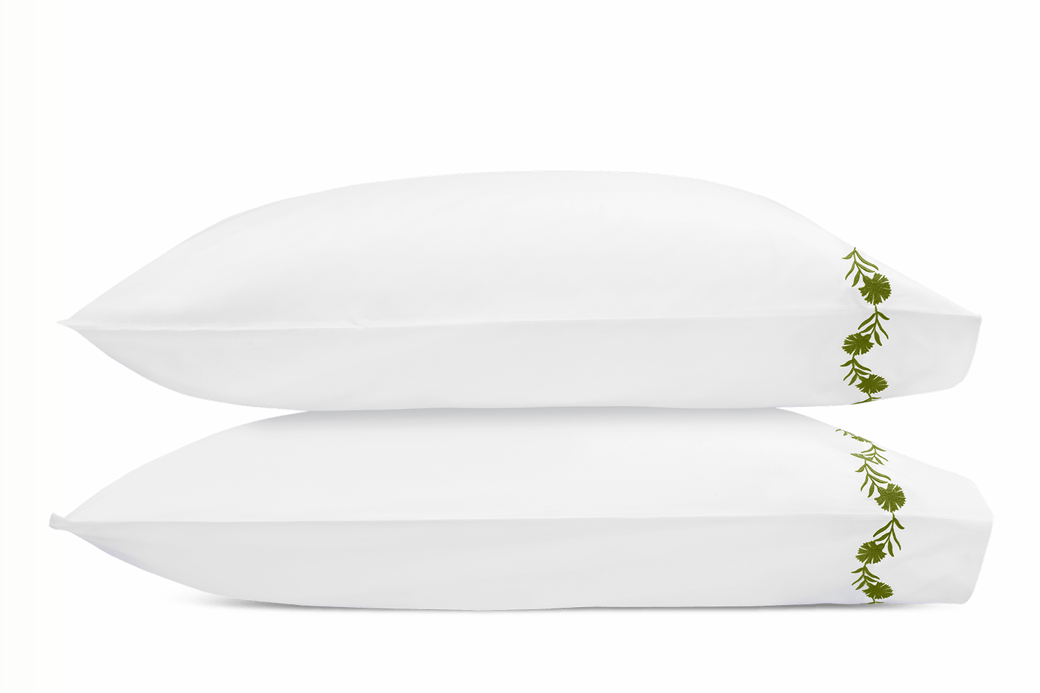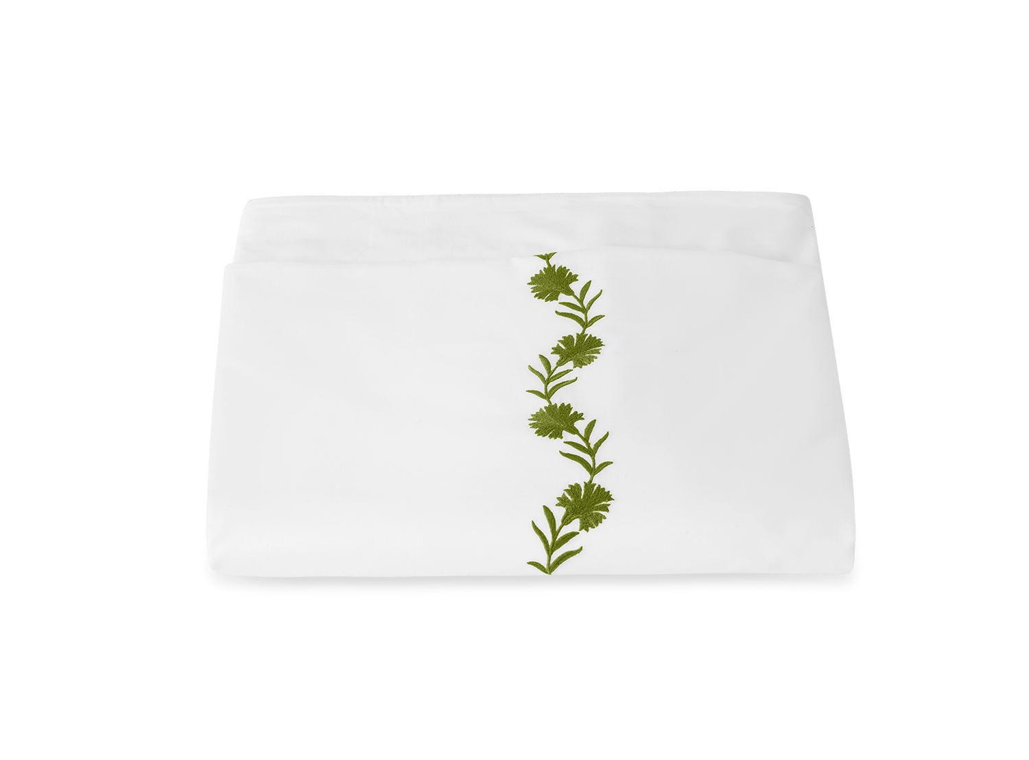 Daphne’s embroidered floral vine is a beautifully crafted detail that, depending on your choice of thread color, can be quietly classic or vibrant and bold. Made on white 520 thread count Ceylon percale, each piece is finished with a knife edge and delicate white cording.