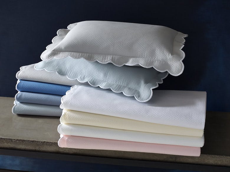 Full of charm and wit, this diamond-patterned pique is the equivalent of the perfect white shirt—in every color. Timeless, textured and always polished, Diamond Pique is made from easy-care fabric and is finished with an embroidered scallop white trim.