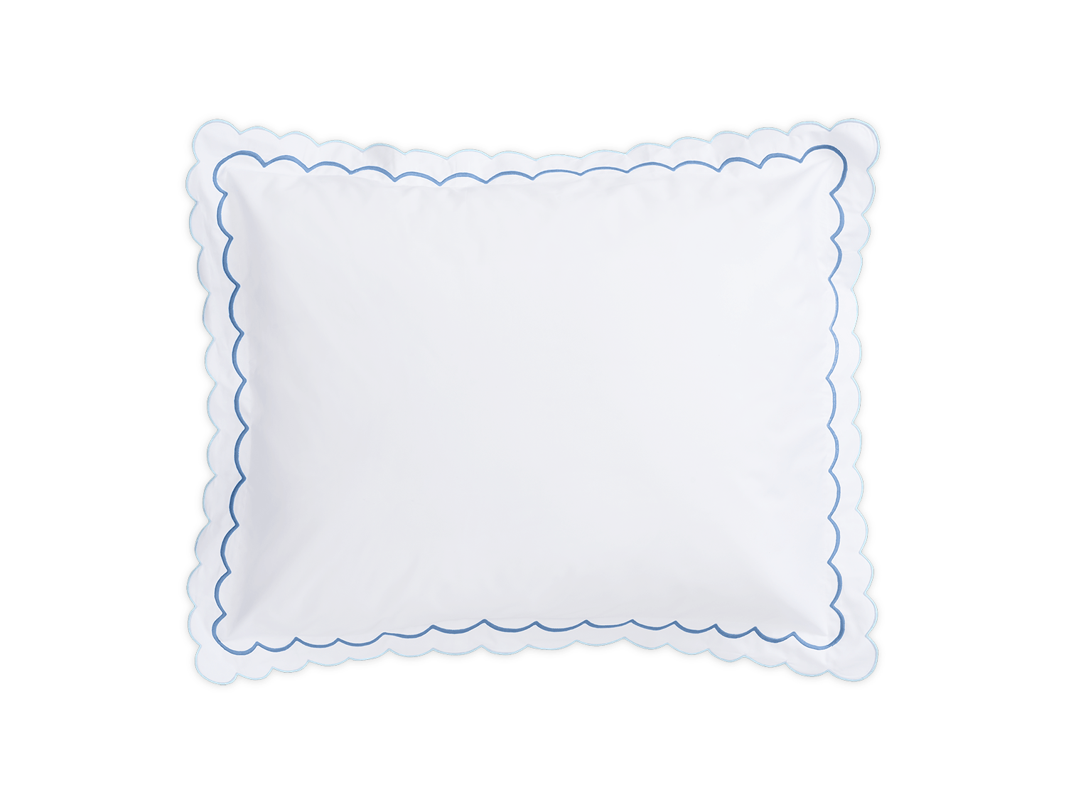 India owes its playful sophistication to an original take on embroidery. Along its narrow, scalloped flange are two carefully stitched lines in distinct tones. Our 520 thread count Ceylon percale is the base fabric for this sweet, elegant collection.