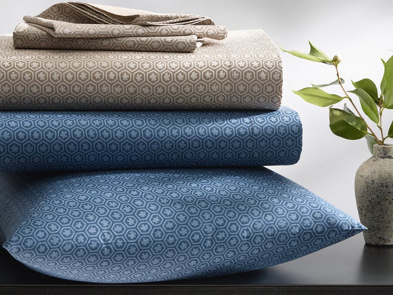 A Matouk twist on an archive textile introduces a playful, graphic print to our Luca cotton percale.