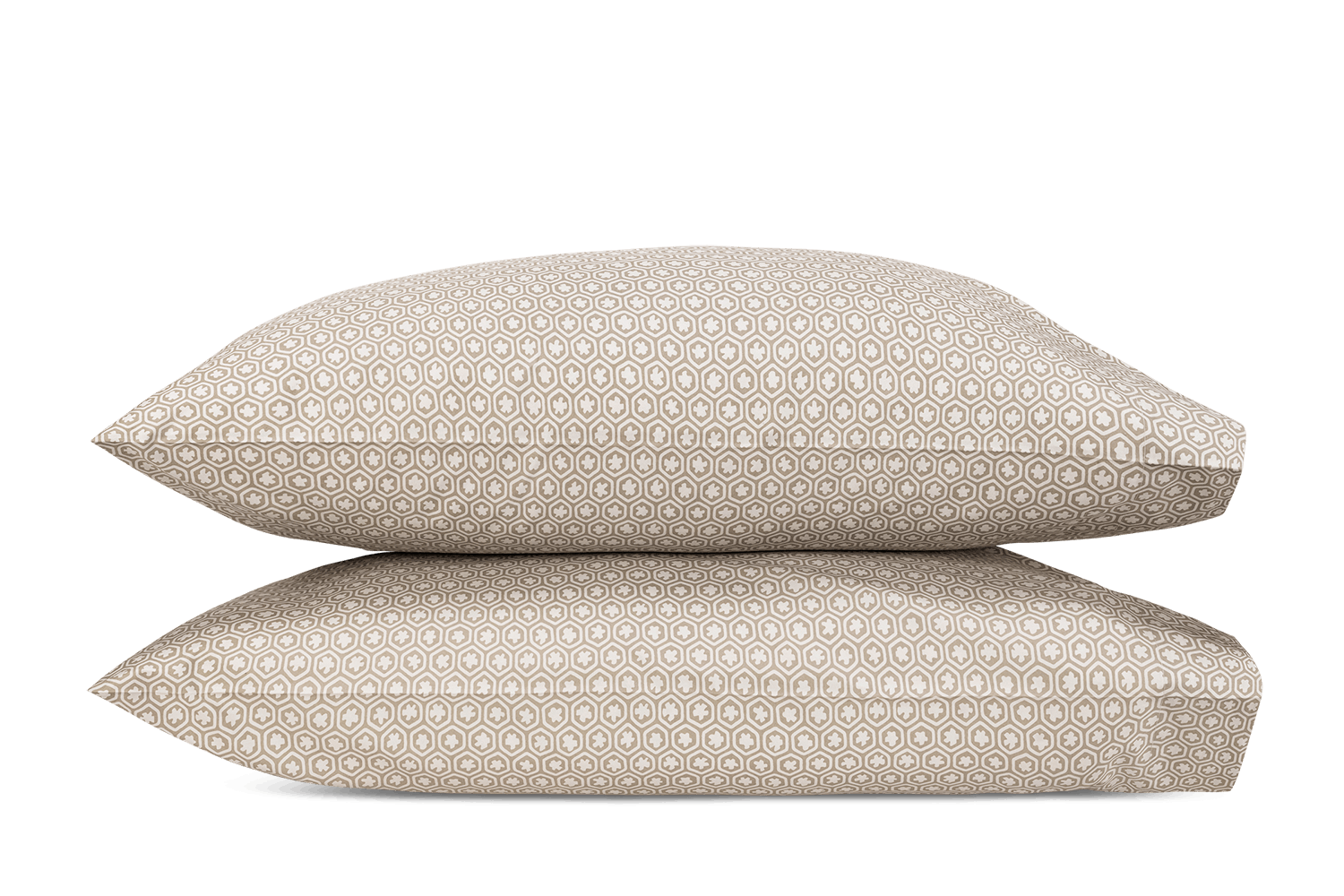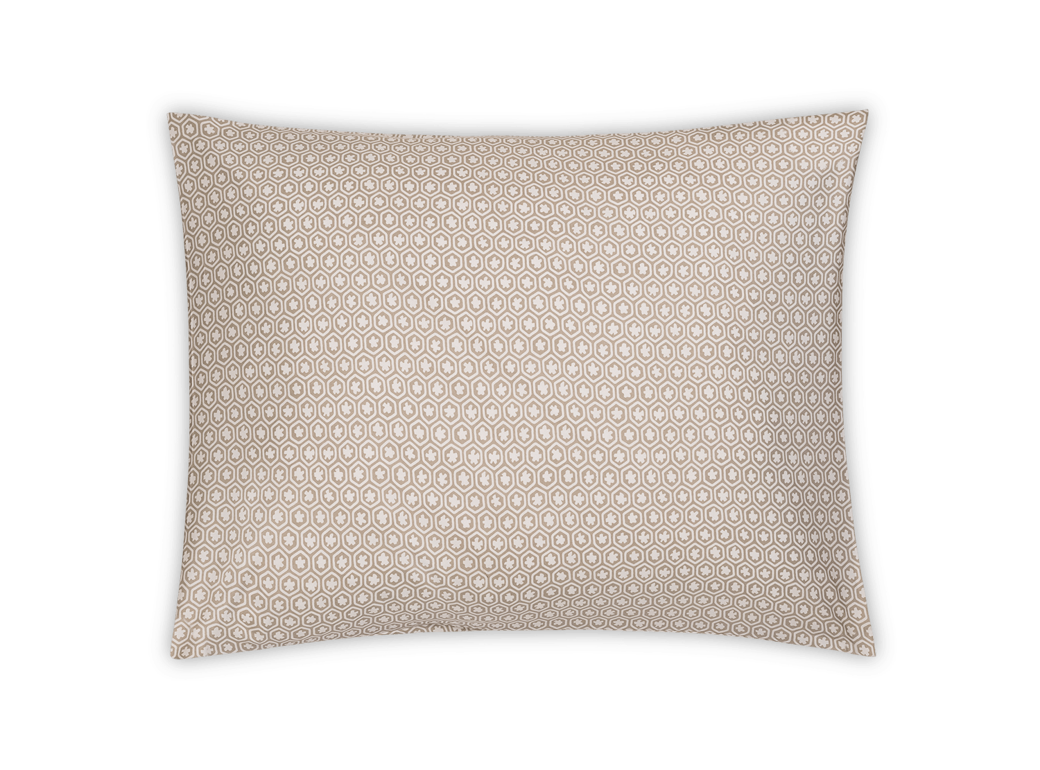 Based on a textile from the Schumacher archive, Levi's graphic lines and irregular shapes bring a sophisticated charm to the collection in 500 thread count percale. Sheeting is finished with a crisp knife edge finish while quilts feature a contrast reverse; each colorway folds over to reveal an abstract pattern.
