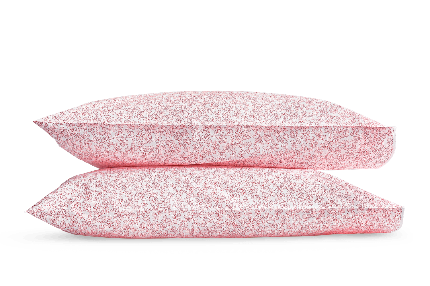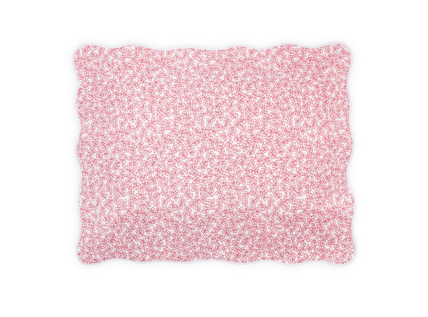 This sophisticated print is a true Matouk original, inspired by a textile found deep in our treasured archives. Margot's small, simply drawn leaves fit snugly together on our 500 thread count Luca Egyptian cotton percale, for a pattern that nearly reads as a solid color. The edges of each piece are finished with a subtle white scallop.