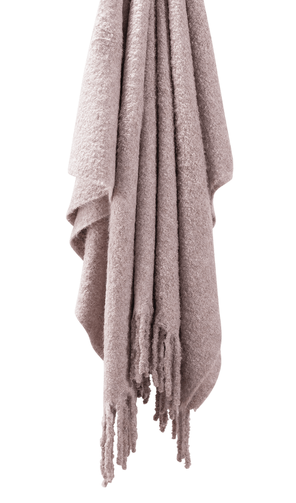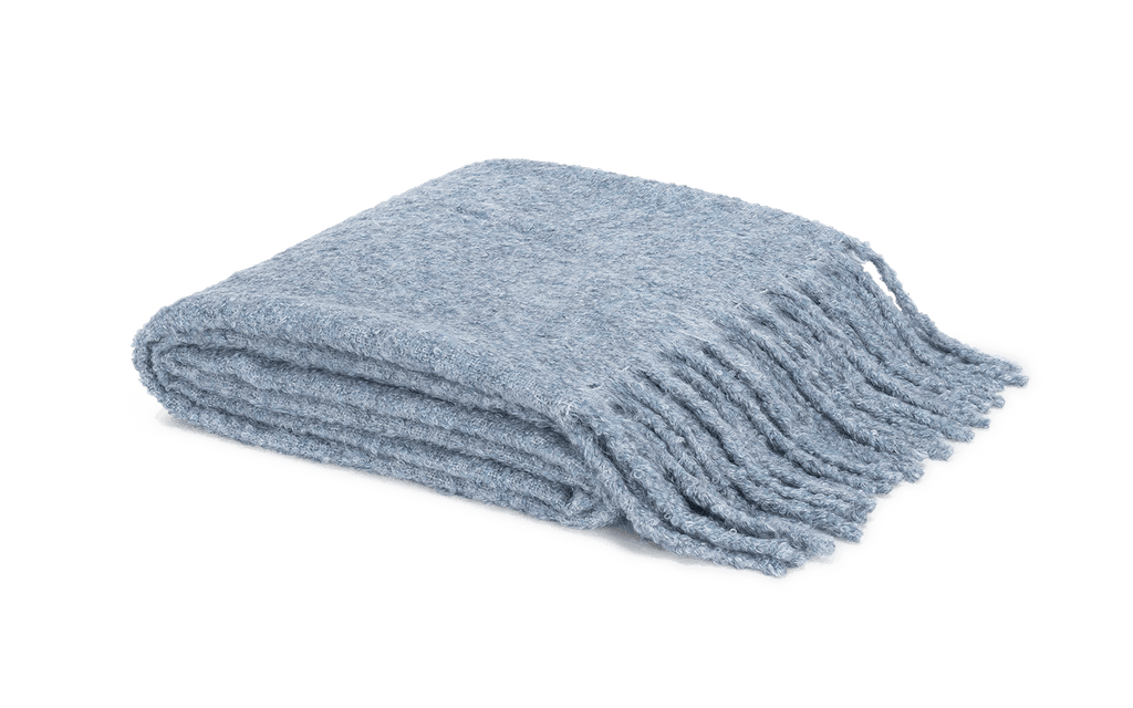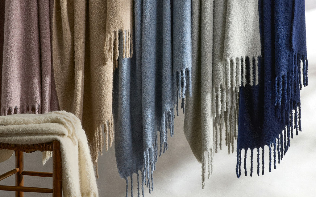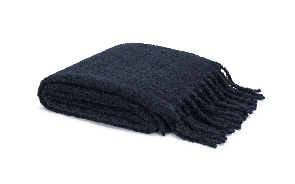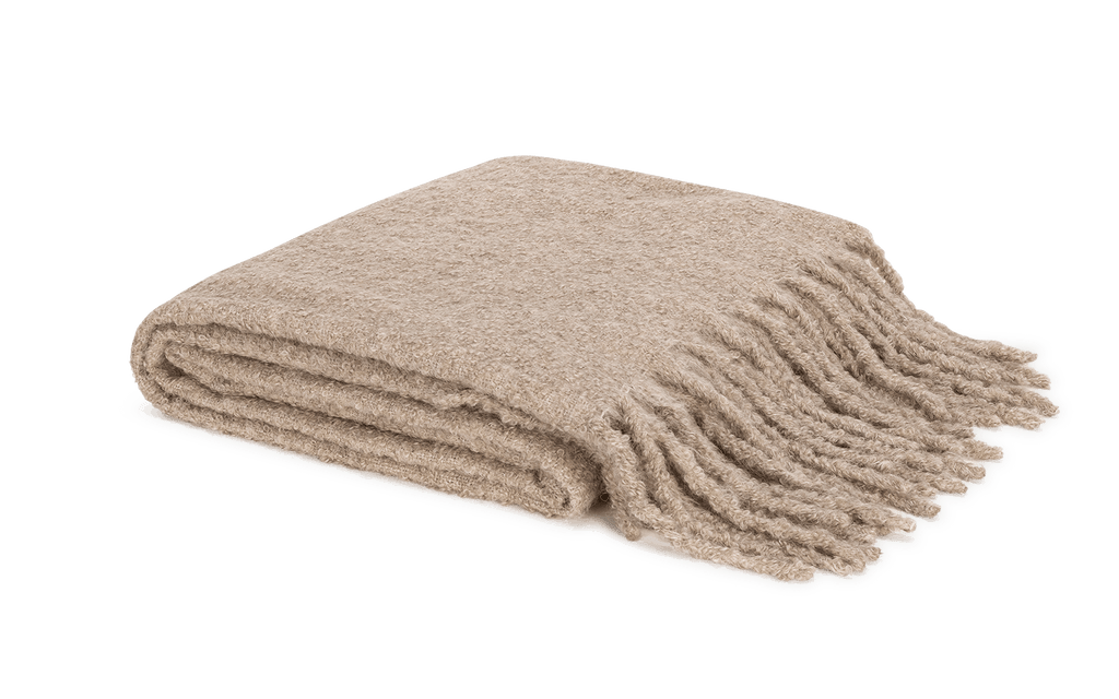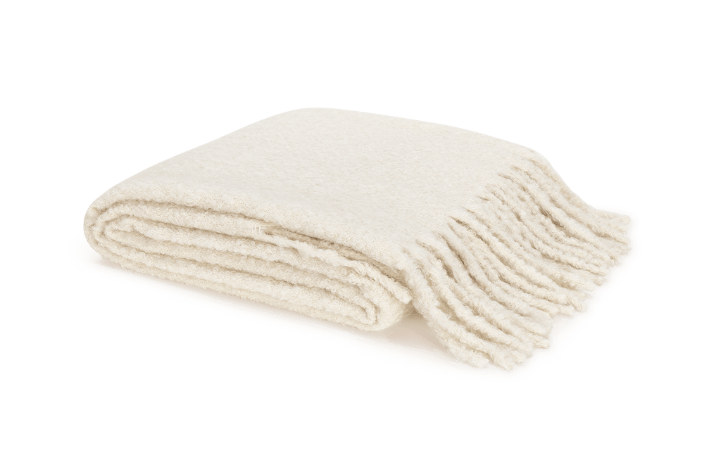 Delightfully chunky and luxuriously cozy, the Poncho throw is crafted in Peru from baby Suri alpaca bouclé. Featuring hand-knotted fringed edges for a comforting weighted feel, Poncho has a chic fashion sensibility and a coat-like warmth for the cooler months of the year. We love baby alpaca for its exceptional strength, softness and breathability; most importantly, the animals have minimal impact on the environment and their fibers are collected in a way that causes them no harm.