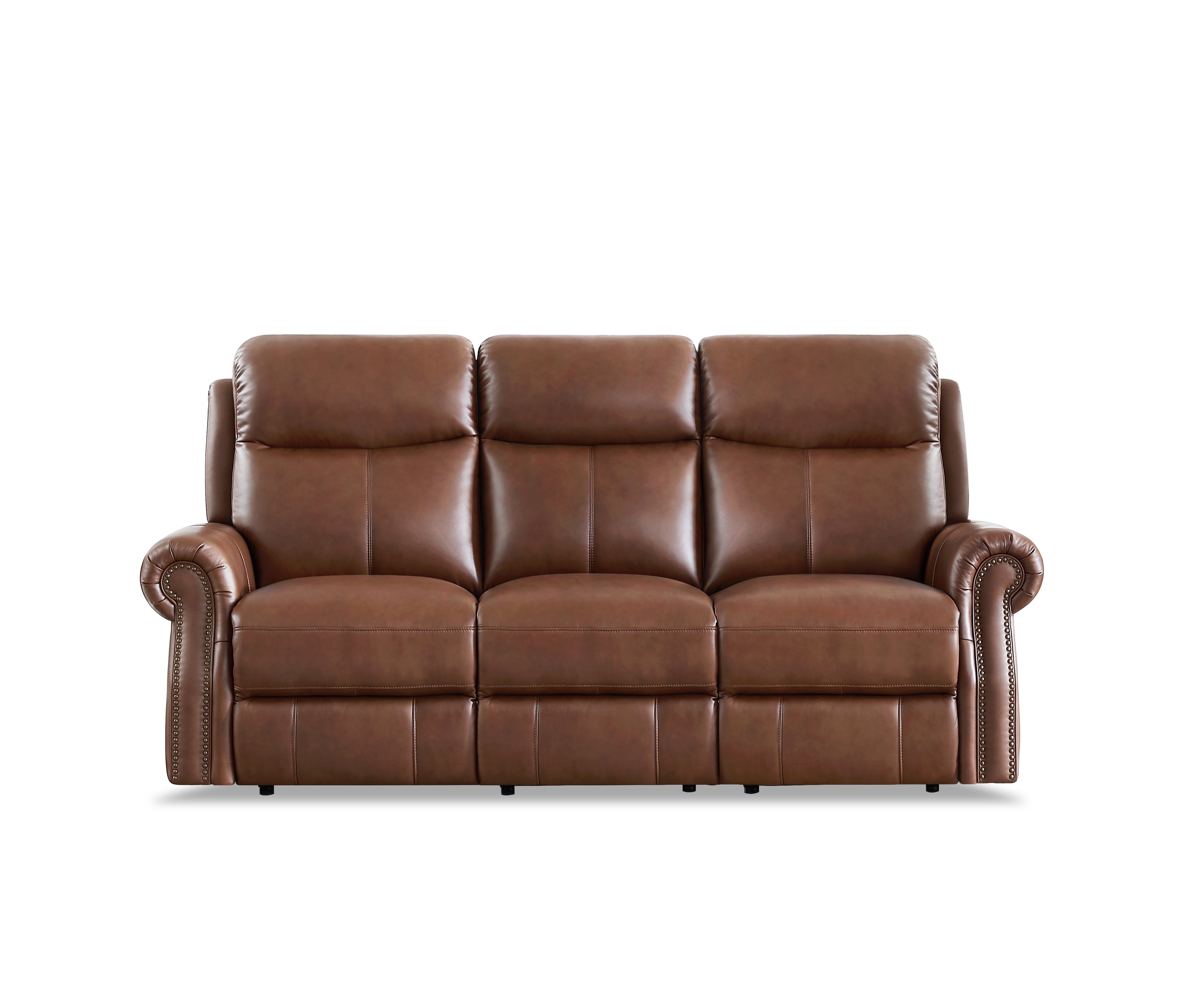 - Premium Leather: Top-grain leather is upholstered on the seating areas and armrests. Leather match is used on the sides and back.