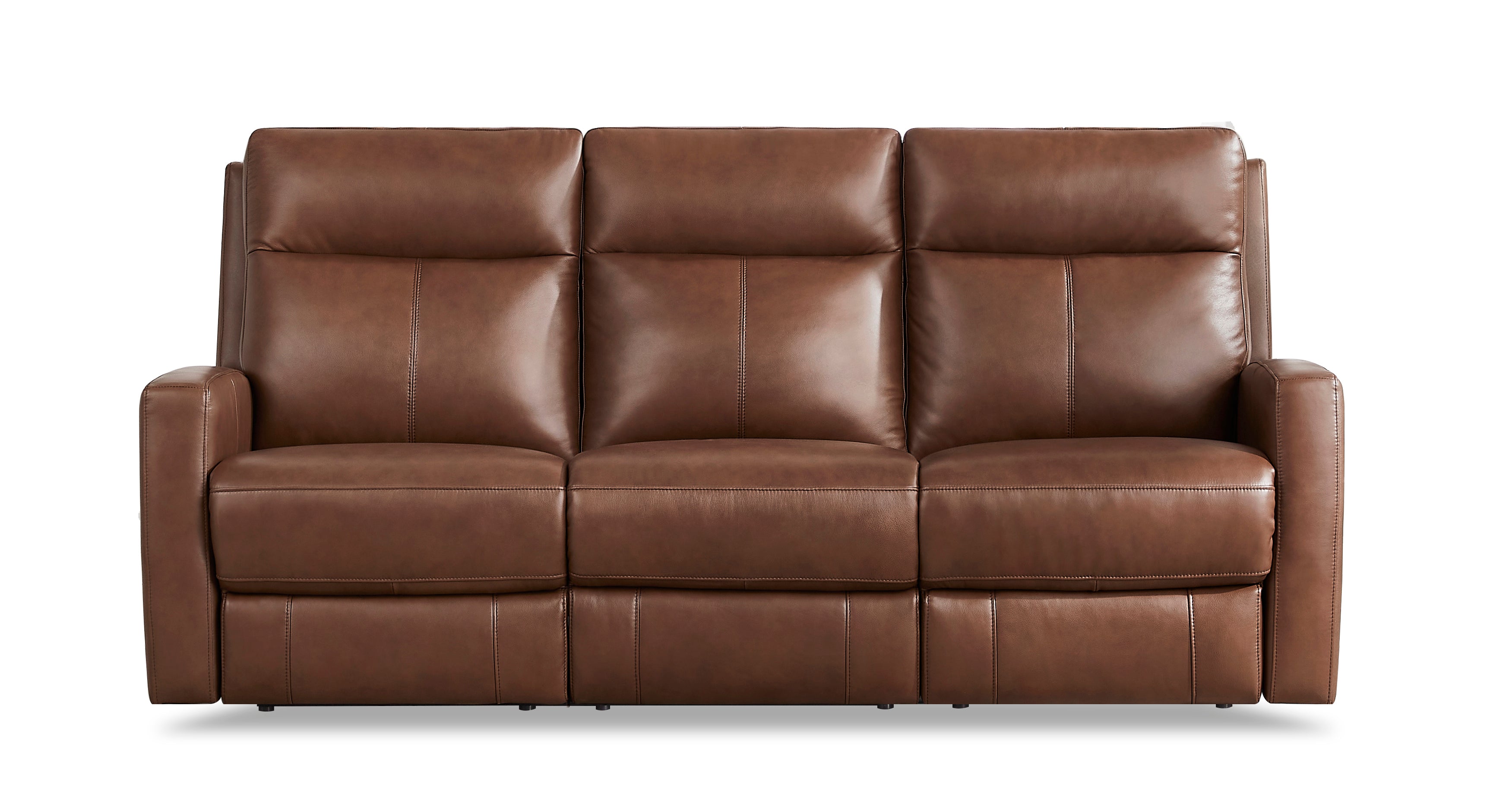 - Premium Leather: Top-grain leather is upholstered on the seating areas and armrests. Leather match is used on the sides and back.