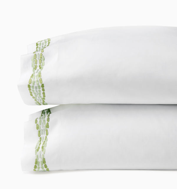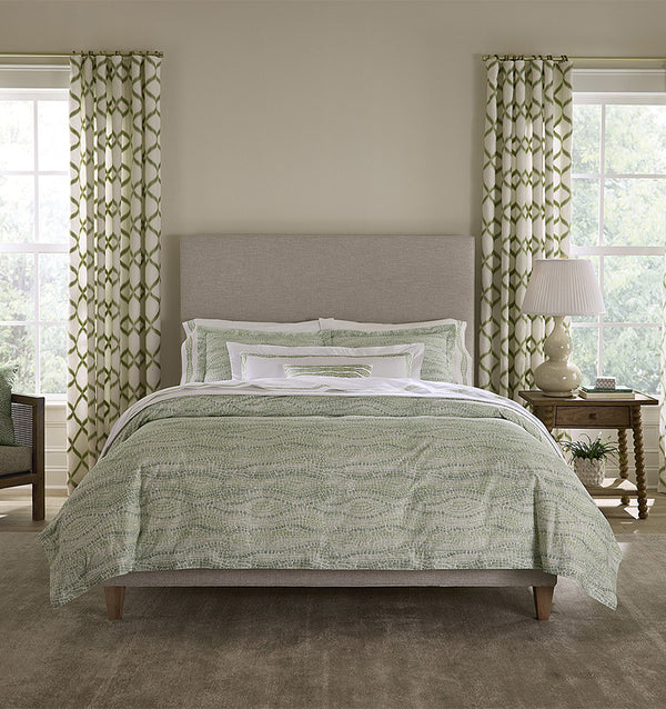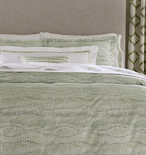 Introducing Cobblestones by SFERRA x Scalamandré. Originally designed in 1960 and inspired by the Greek historical city of Mystras, this iconic Cobblestones motif reflects Scalamandré’s commitment to timeless elegance. Once rendered in single-color printed cotton, Cobblestones has now been reimagined with a fresh, transitional sensibility for today’s design aesthetics. This updated version marries the pattern’s rich Byzantine roots with a contemporary softness: a watercolor wash effect brings depth and nuance to the print design, while the embroidered elements of this Italian-crafted bedding collection lend added dimension and tactile luxury. Cobblestones offers the perfect balance of classical inspiration and modern refinement, inviting a piece of