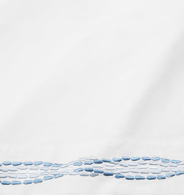 Introducing Cobblestones by SFERRA x Scalamandré. Originally designed in 1960 and inspired by the Greek historical city of Mystras, this iconic Cobblestones motif reflects Scalamandré’s commitment to timeless elegance. Once rendered in single-color printed cotton, Cobblestones has now been reimagined with a fresh, transitional sensibility for today’s design aesthetics. This updated version marries the pattern’s rich Byzantine roots with a contemporary softness rendered through embroidered elements of this Italian-crafted bedding collection, adding dimension and tactile luxury. Cobblestones offers the perfect balance of classical inspiration and modern refinement, inviting a piece of