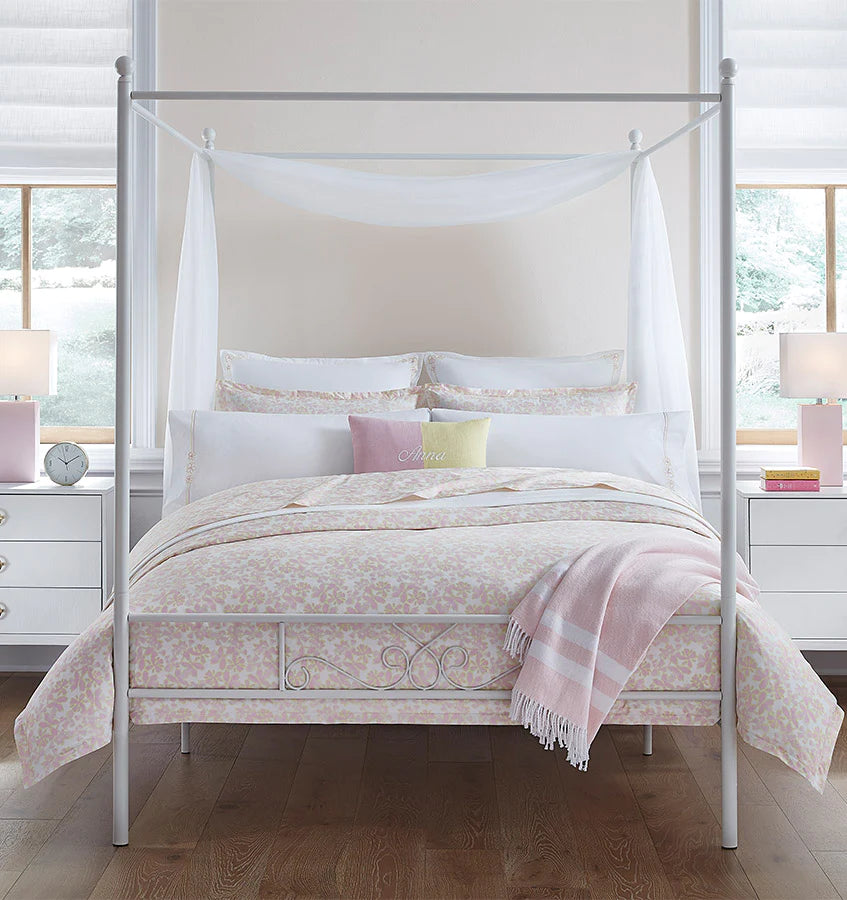 Petal-pink and lemon-yellow flowers bloom into an irresistible all-over pattern in Prato, a springtimeinspired collection. The coordinating Fiorina collection features a double border of yellow and pink satin-stitch overlaid by yellow and pink blossoms. Together, Prato and Fiorina create a bed as bright as it is enchanting, sparking many a sweet dream to come.