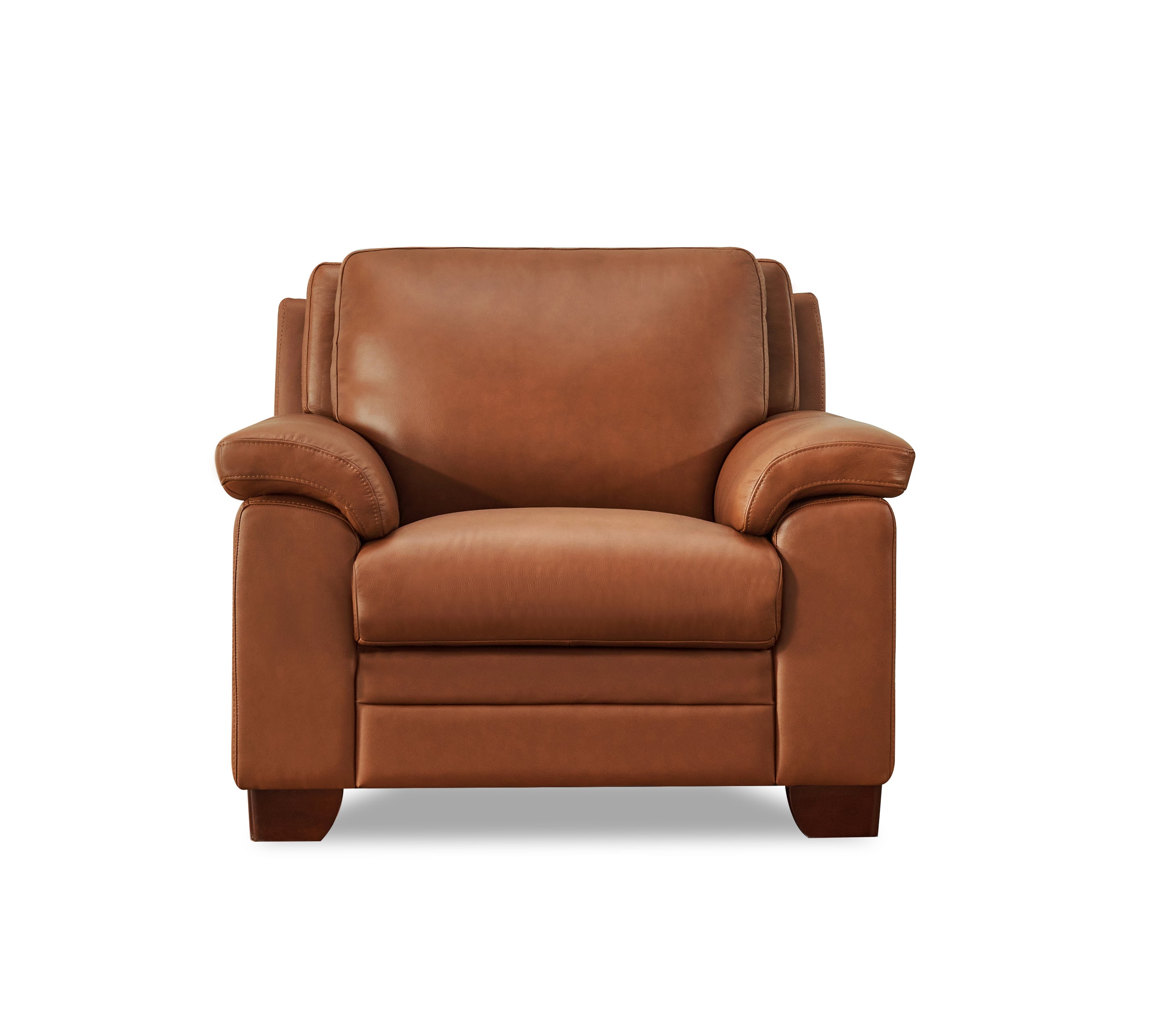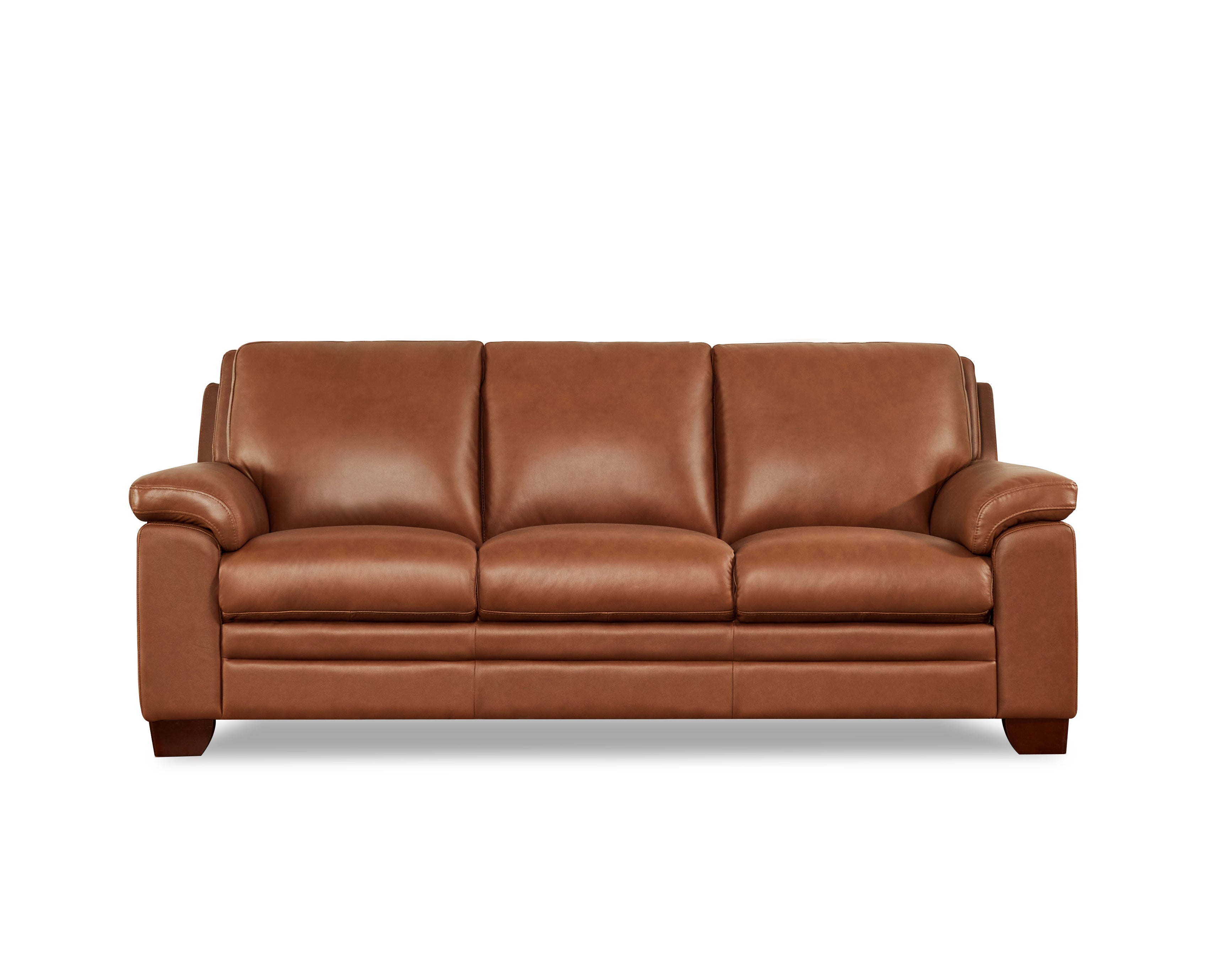 - Premium Leather: Top-grain leather is upholstered on the seating areas and armrests. Leather match is used on the sides and back.