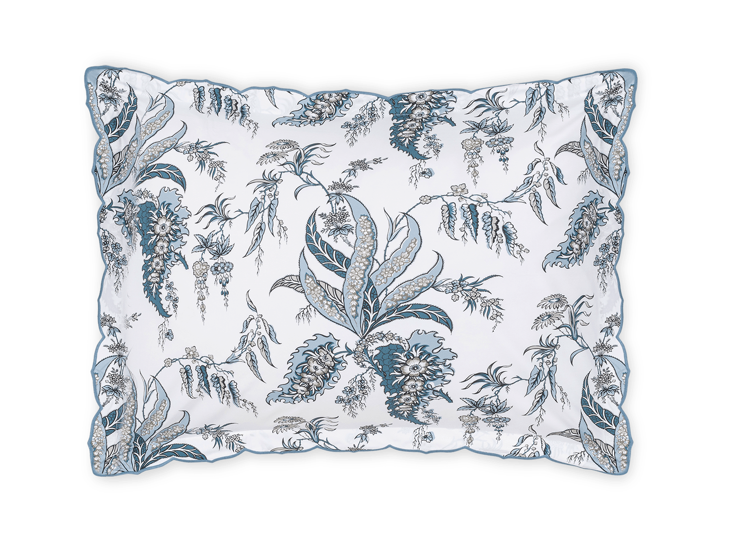 This free-spirited botanical print by Schumacher marries the grace and wit of the British countryside with an air of classic sophistication. Featured on crisp, 500 thread count Luca percale, its muted tones and wild florals make a charming bedding statement.