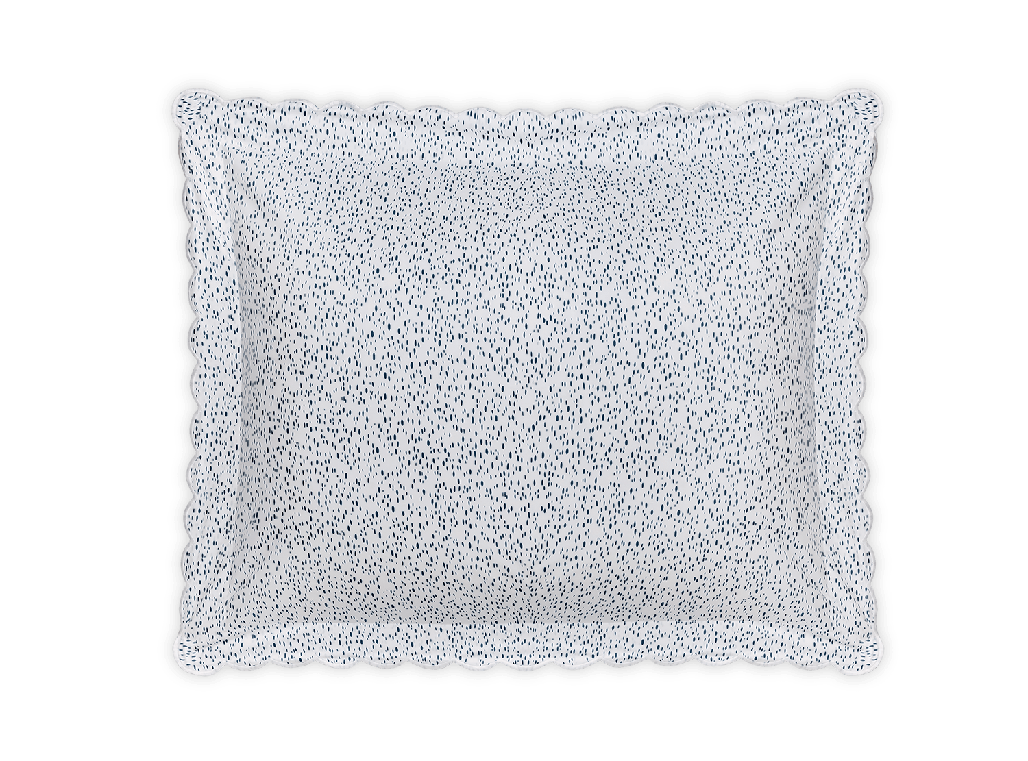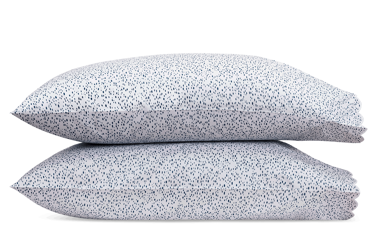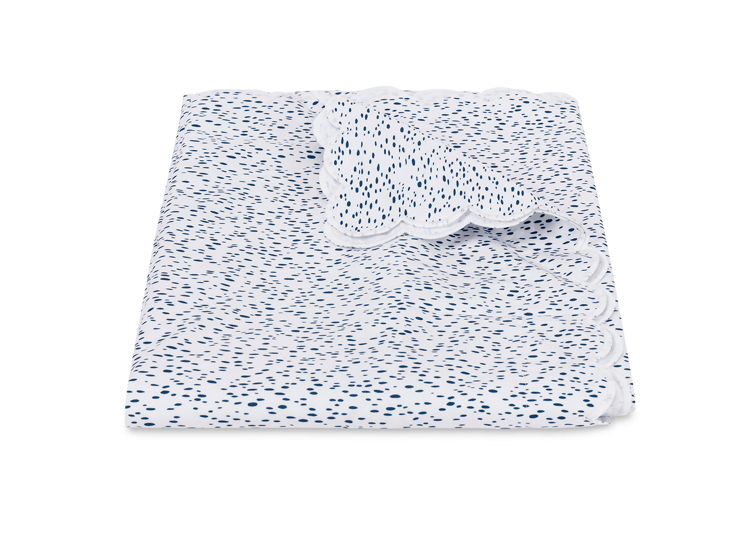 Chic and charming Celine features the painterly dots of Schumacher's classic "Duma", reimagined for the bed in five graphic colors that stand out against the white background of our 500 thread count Luca Egyptian cotton percale. Finished with a perfect embroidered scalloped edge, Celine is a go-to match for both vibrant prints and rich solids.