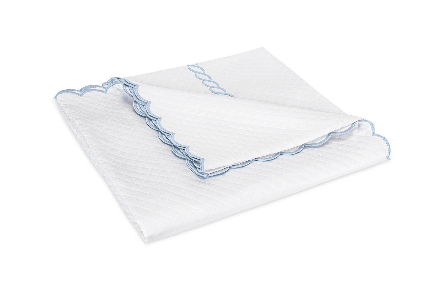 Perhaps the most quintessential of all embroidery motifs, our Classic Chain with scalloped edge is an essential in any well-appointed linen closet. Our newest rendition features these captivating details applied to our sublime Petra diamond matelassé. The combination of embroidery and fabric perfection is built on our decades of commitment to relentlessly pursuing ways to make the best even better.