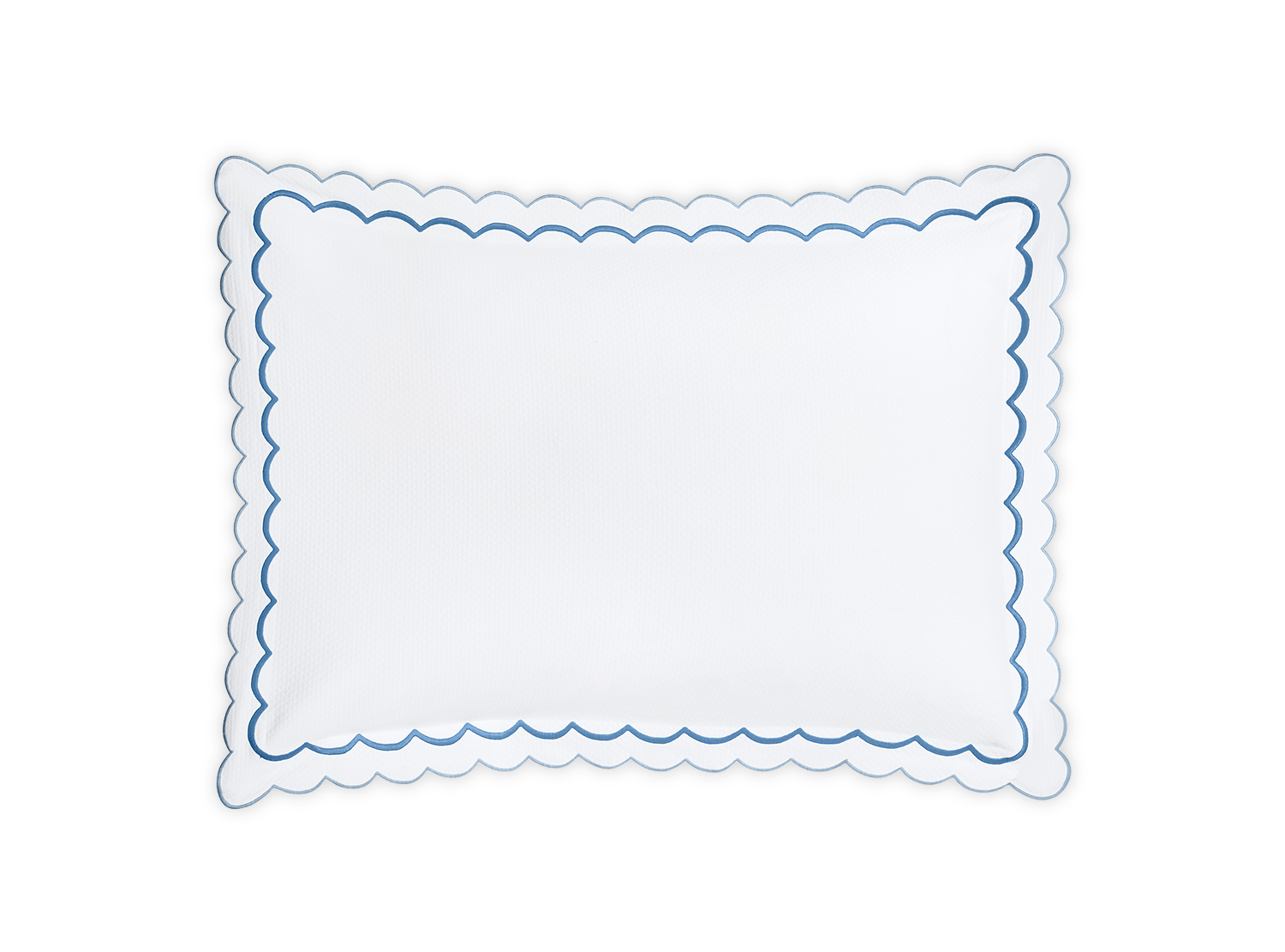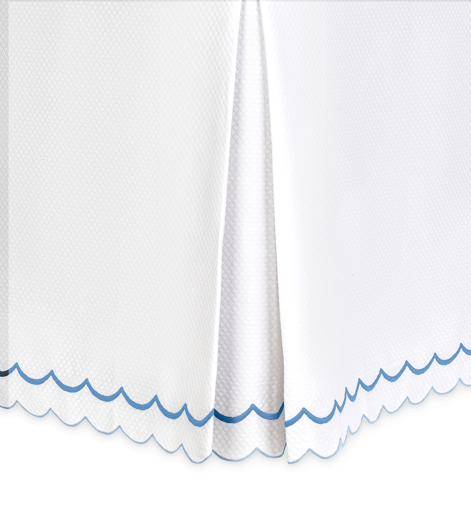 This playful take on line and color sees our popular India double-scallop embroidery on diamond piqué matelassé. Crafted in an easy to care for cotton blend, the style features two-tone edges in a range of delicious hues.