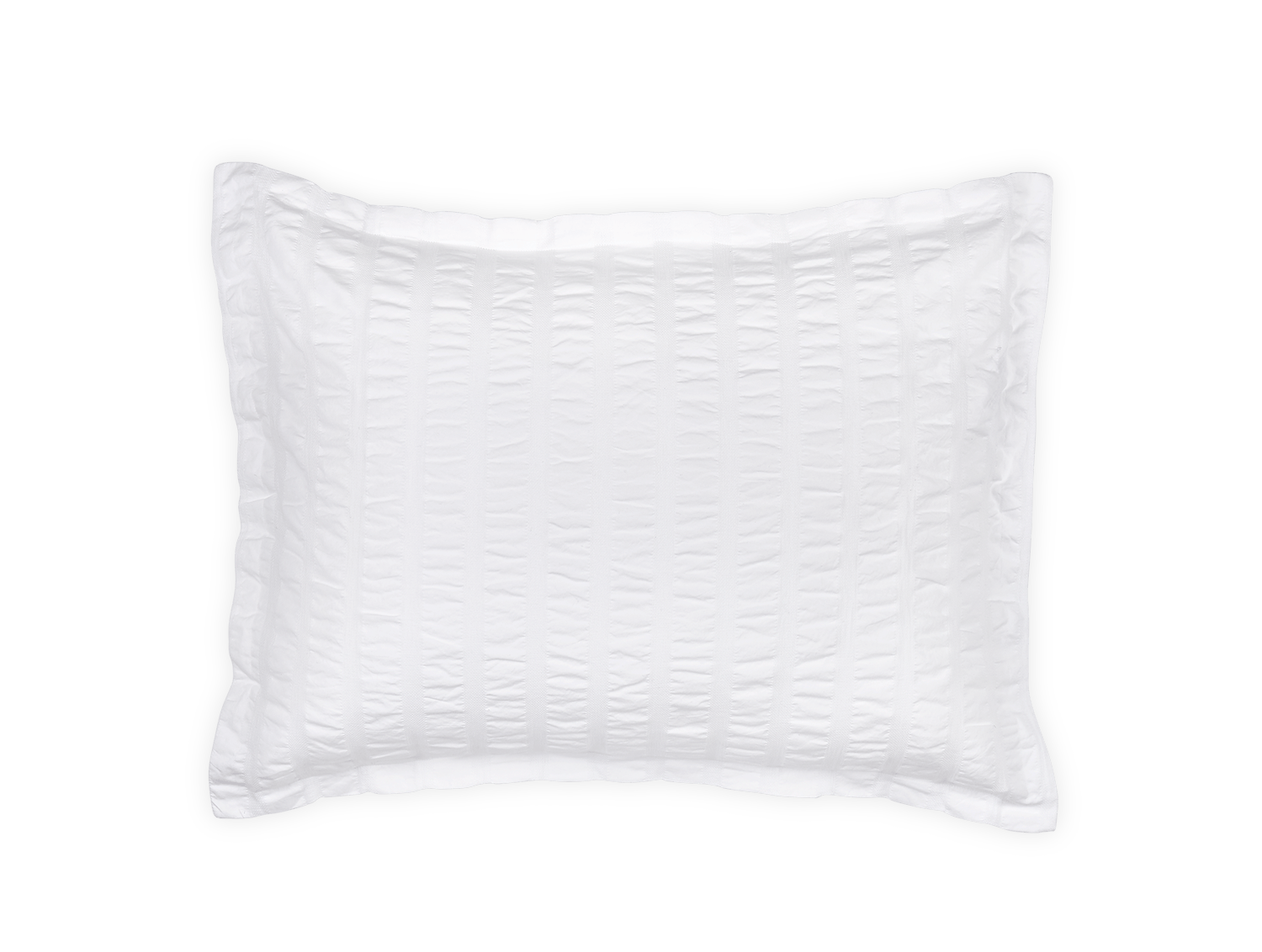 Rows of oversize cotton seersucker and basketweave from Portugal give this duvet and shams a modern update on a classic look. Pair it with a colorful pattern or layer it on an all-white bed for added texture and subtle pattern.