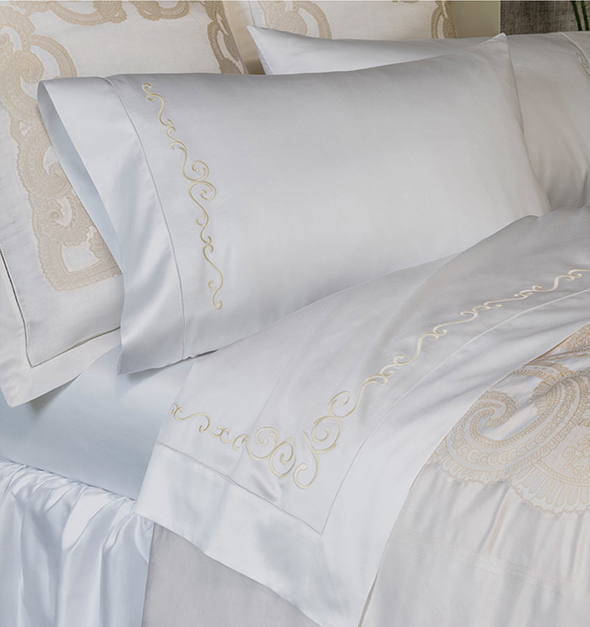 Severina marries luxury with innovation. By embroidering Giza Luxe—our ultimate sateen sheeting—with over 57,000 stitches, Severina is the most sumptuous sheet ever dreamt upon.